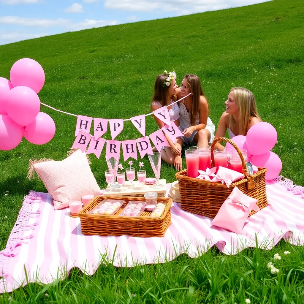 Create unforgettable Pink Birthday Picnic memories with AI-generated images! Using artificial intelligence, you can design and customize stunning visuals that capture the essence of a lovely outdoor celebration. Simply upload your favorite birthday girl's name, a few keywords like 'picnic', 'pink', and 'birthday', and let the AI do the magic. In no time, you'll receive a range of high-quality images featuring a beautifully set table, balloons, and a pink cake, all amidst a serene outdoor backdrop. Share these digital masterpieces on social media or use them as a fun surprise for the birthday girl - the perfect way to make her special day even more unforgettable!