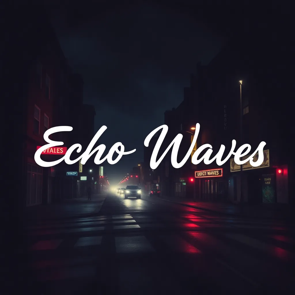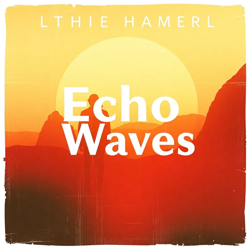 Create an album cover for a fictional indie rock band 'Echo Waves' that captures the essence of their atmospheric, nostalgia-tinged sound. Incorporate a mix of retro and modern elements, with a focus on warm colors and distressed textures. The band's name and album title should be prominently displayed.