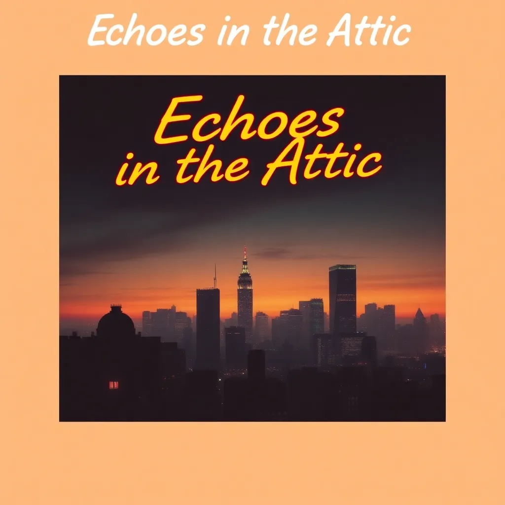 Create an album cover for a fictional indie rock band 'Echoes in the Attic' that embodies their genre-bending sound, blending 80s synth-pop and 90s grunge. Incorporate vintage cassette tapes, neon lights, and a mysterious, atmospheric cityscape at dusk. The cover should evoke a sense of nostalgia and longing.