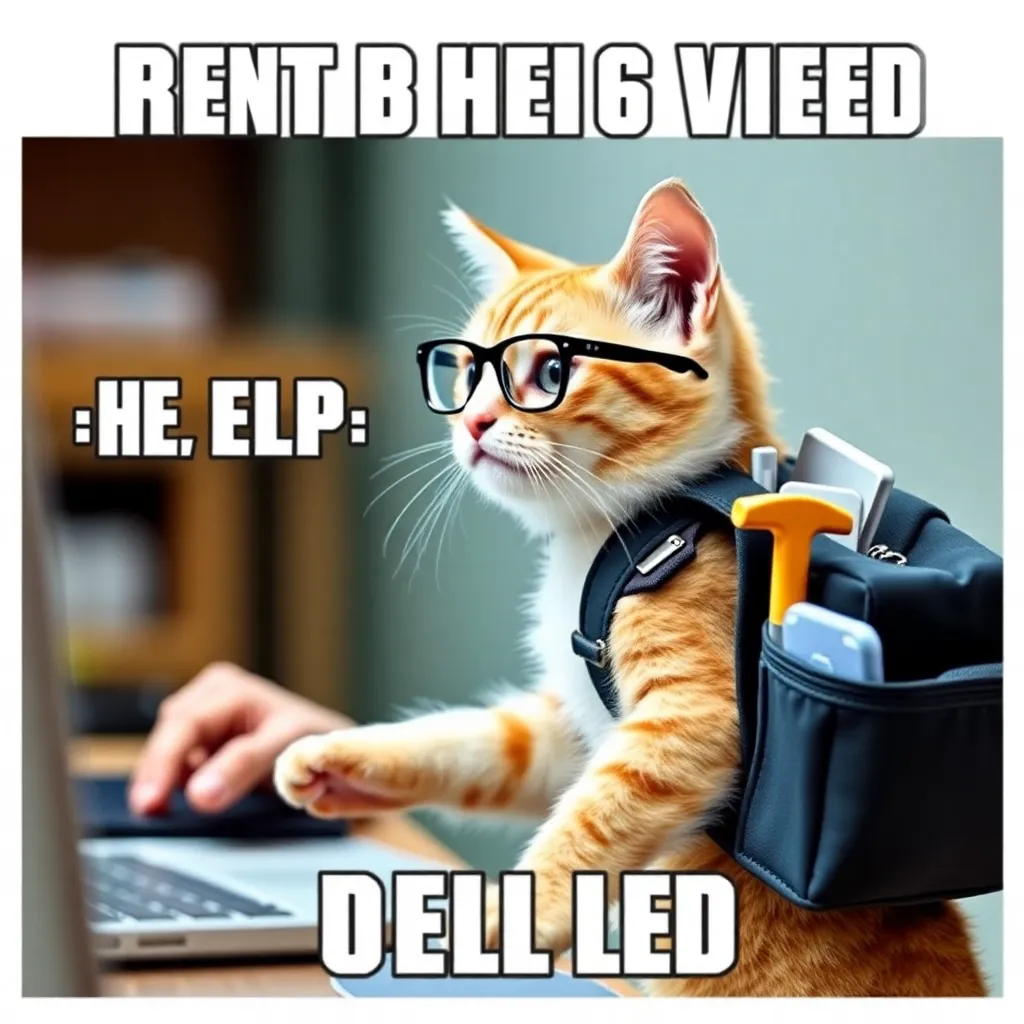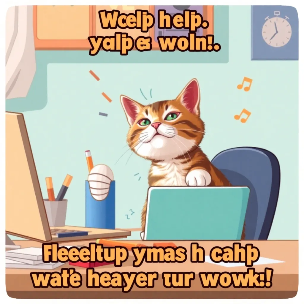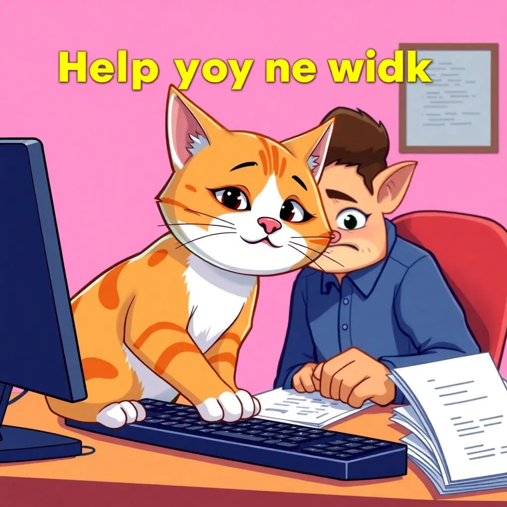 Create a humorous meme video featuring a cat trying to 'help' a person with their laptop, with funny expressions and reactions. Incorporate relatable moments like autocorrect fails, slow internet, and password struggles. Add a catchy background tune and animated text overlays to make it a viral sensation!