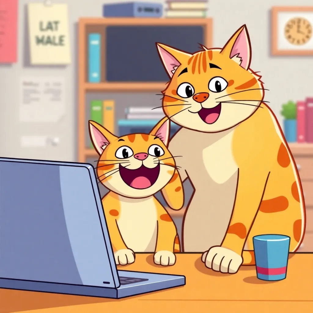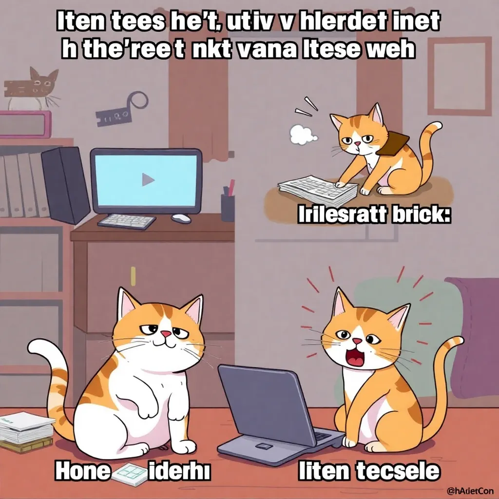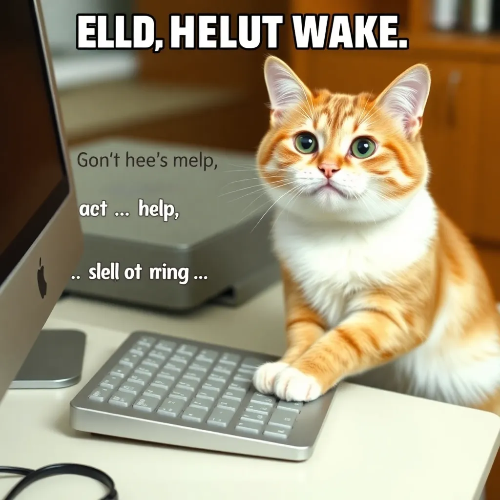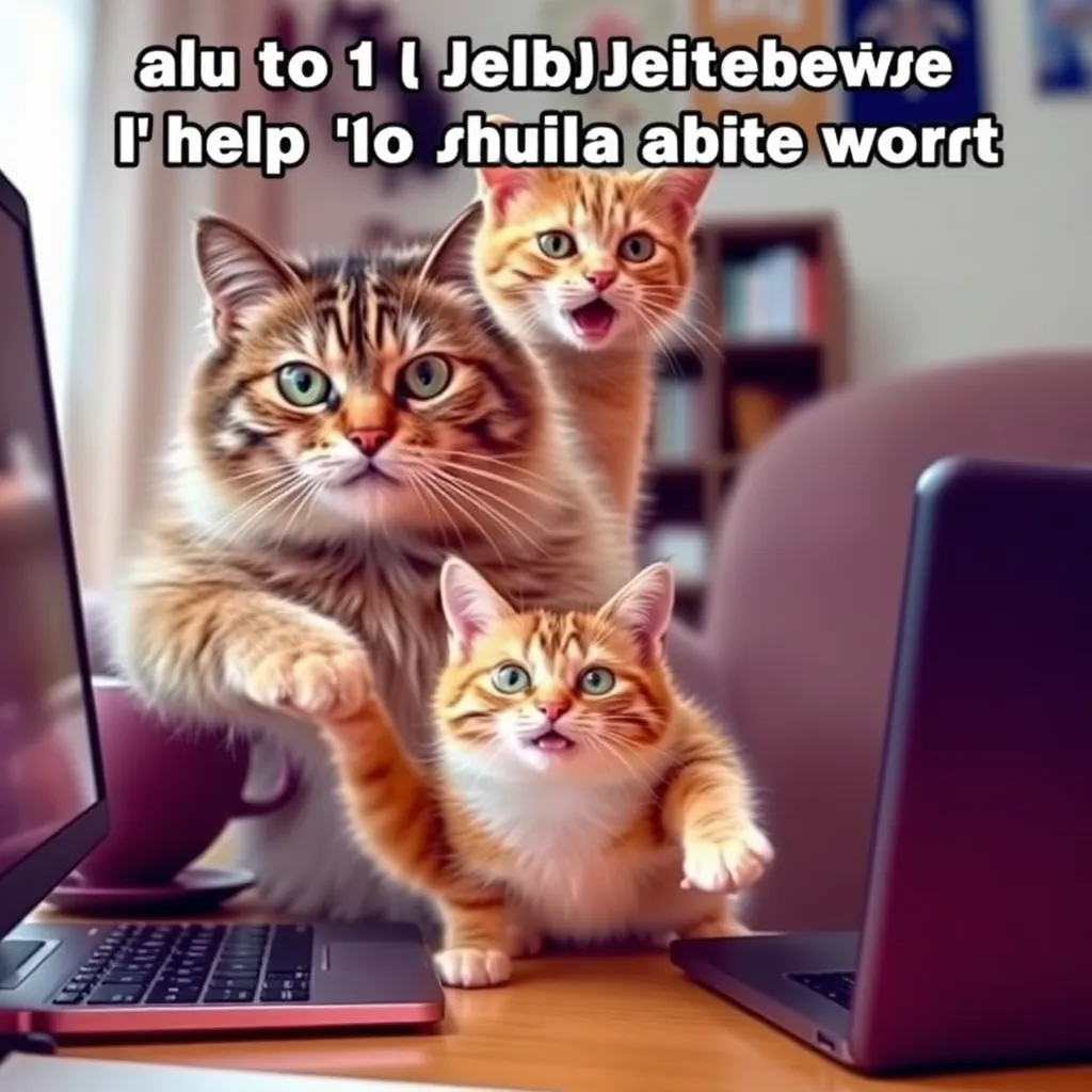 Create a humorous meme video featuring a cat trying to 'help' a person with their laptop, with funny expressions and reactions. Incorporate relatable moments like autocorrect fails, slow internet, and password struggles. Add a catchy background tune and animated text overlays to make it a viral sensation!