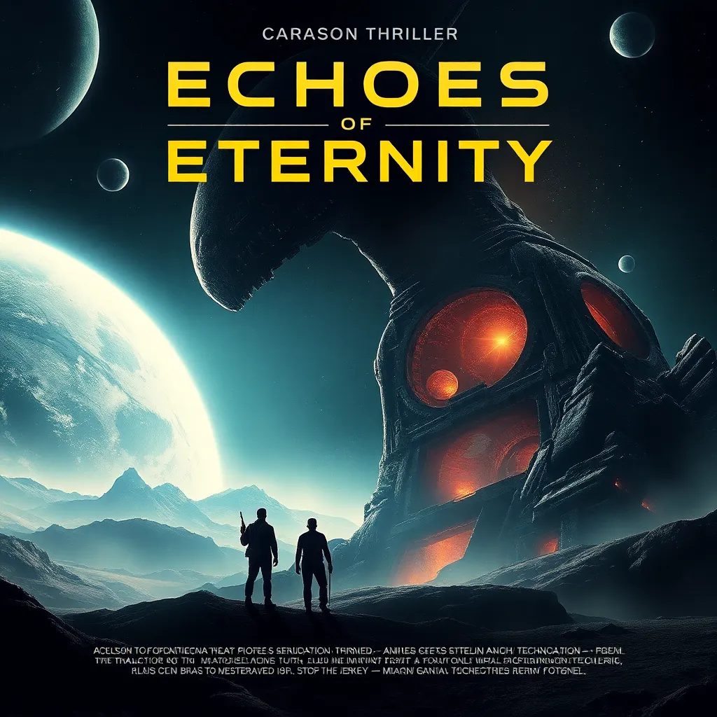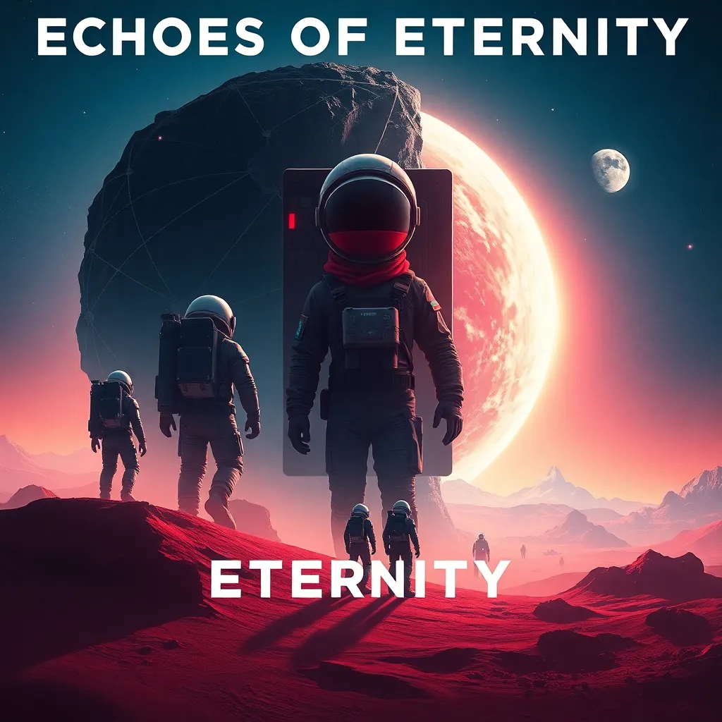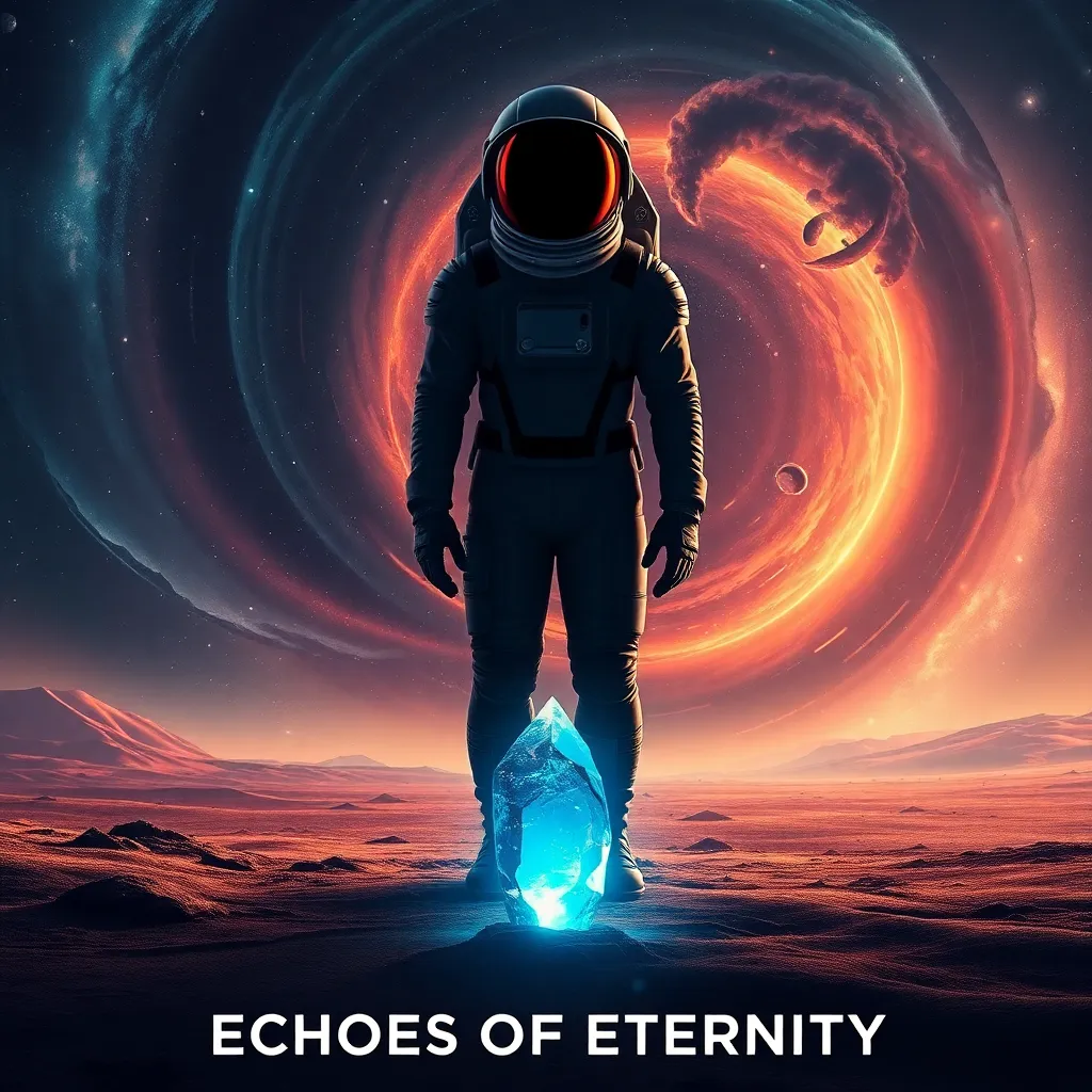 Create a movie poster for a futuristic sci-fi film titled 'Echoes of Eternity.' The story follows a group of astronauts who discover a hidden portal on a distant planet, leading them on a thrilling adventure through time and space. The poster should feature a stunning, otherworldly landscape with a hint of nostalgia.