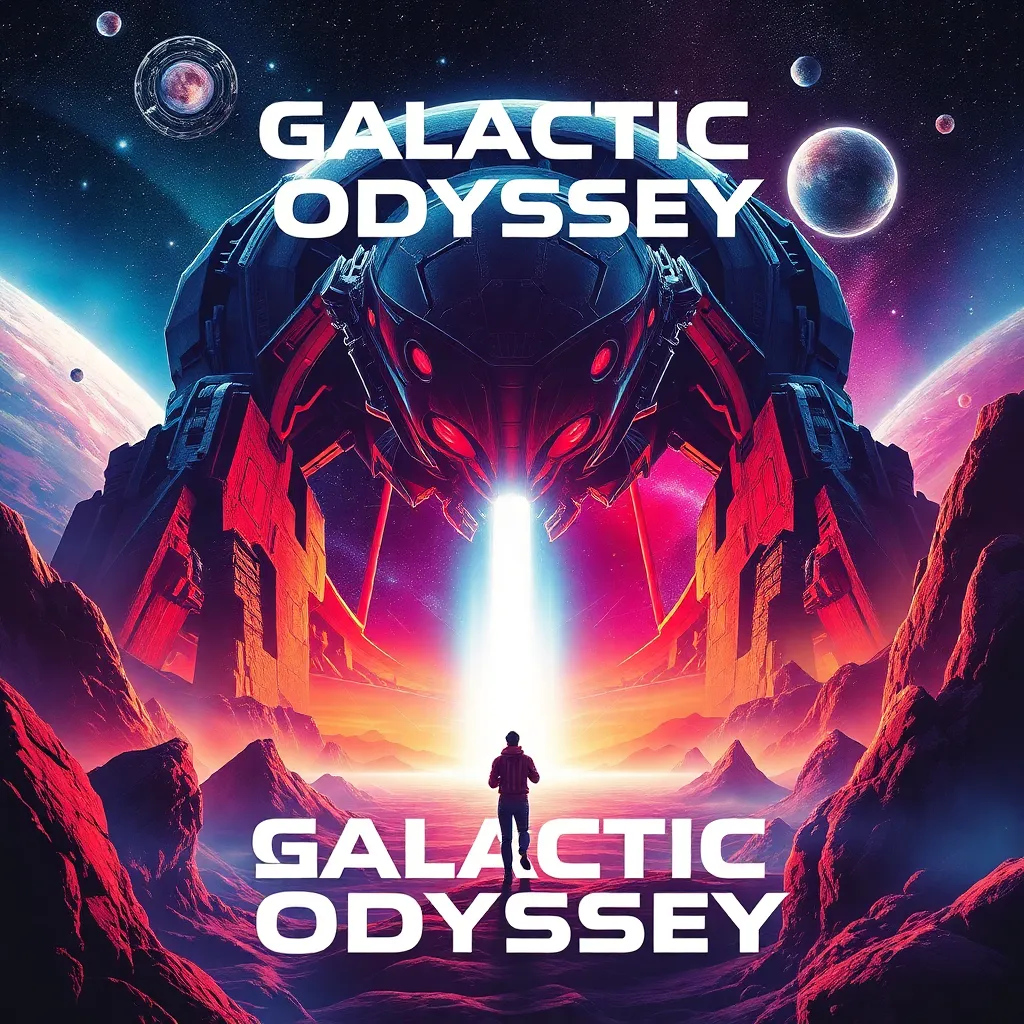 Create a futuristic sci-fi movie poster for 'Galactic Odyssey', a thrilling adventure about a group of space explorers who discover a mysterious alien artifact that holds the key to saving humanity from an impending intergalactic catastrophe. Incorporate vibrant colors, cosmic landscapes, and a sense of urgency.