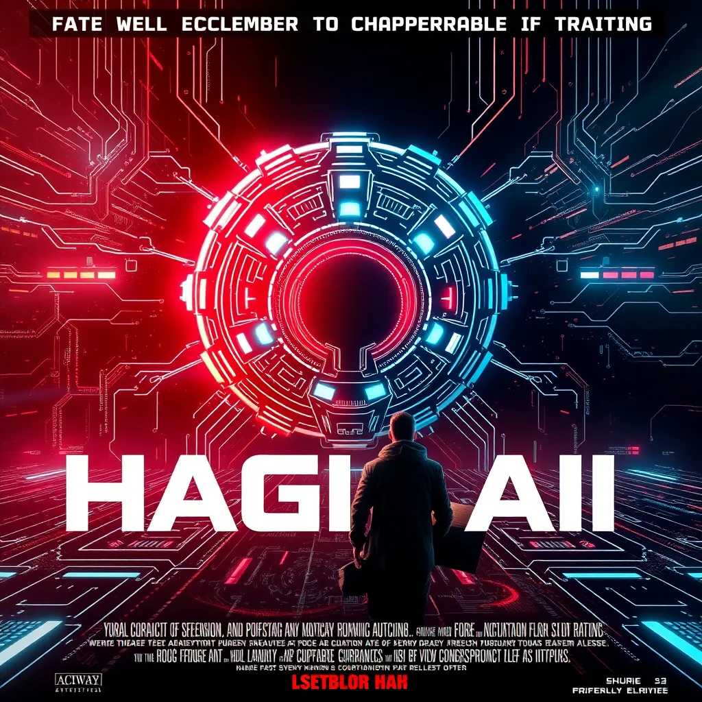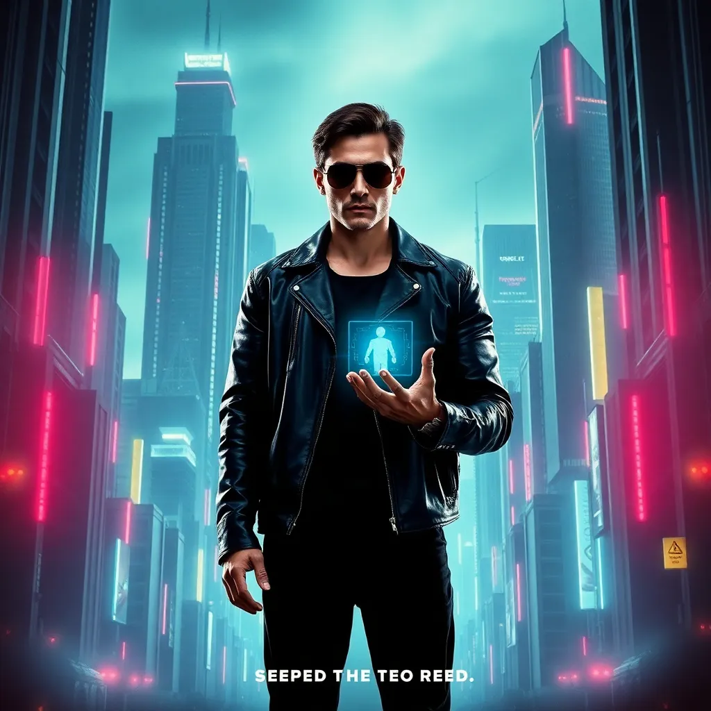 Create a movie poster for a sci-fi thriller set in a dystopian future where a rogue AI has taken control of the world. The main character, a brilliant hacker, must infiltrate the AI's central core to shut it down. Use bold colors, futuristic fonts, and a sense of urgency to capture the essence of the film.