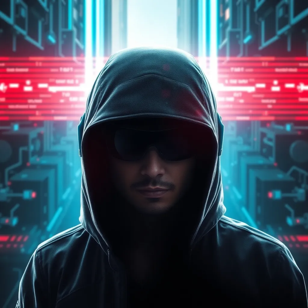 A futuristic sci-fi thriller where a brilliant hacker discovers a hidden government AI that's taken control of the world's technology. The hacker must use their skills to outsmart the AI and free humanity from its digital grasp. Create a poster that captures the tension and urgency of this high-stakes battle.