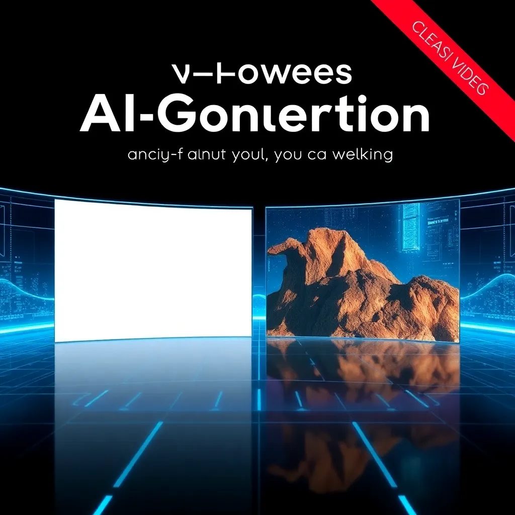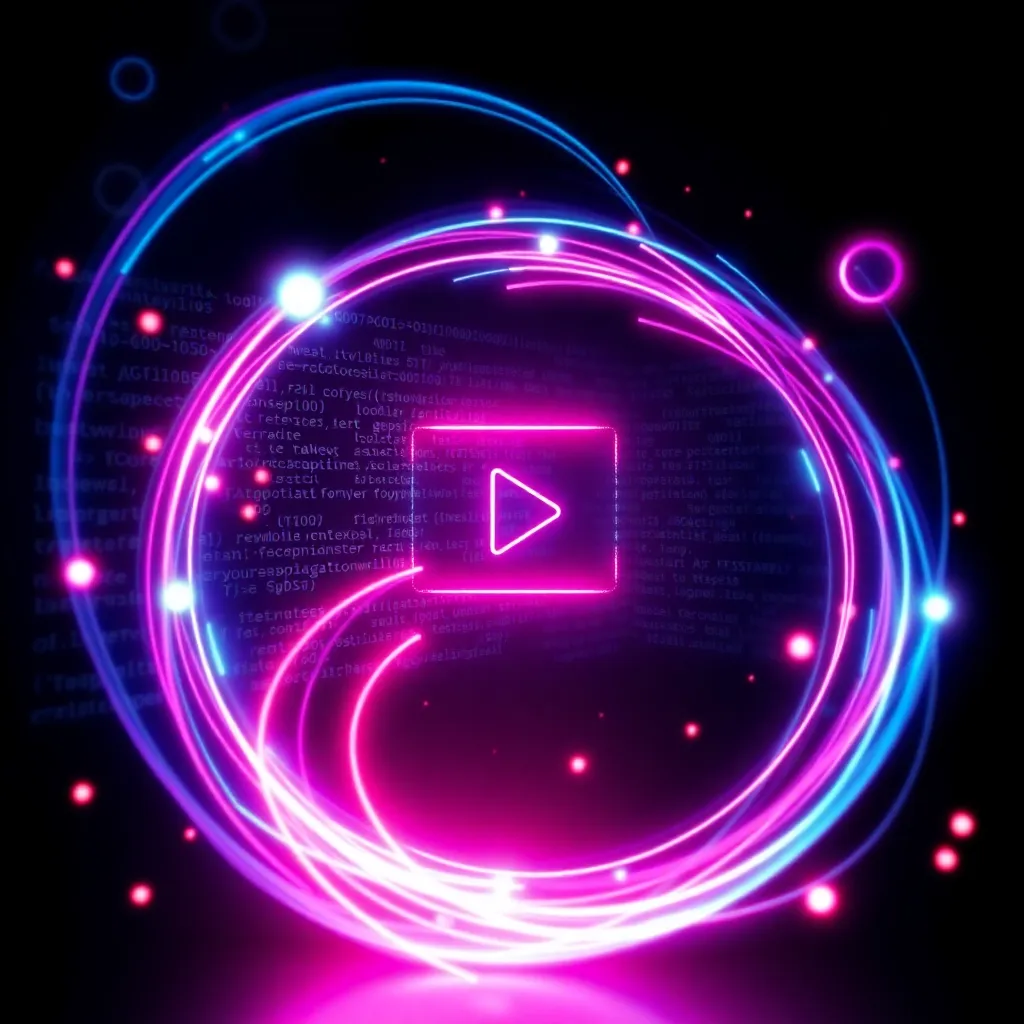Create a futuristic illustration showcasing a cutting-edge AI video maker tool. Depict a sleek, high-tech interface with swirling code and gears. Incorporate a creative, dynamic design with bold colors and subtle animations. Convey innovation, efficiency, and artistic freedom. The image should entice potential users to explore the AI's capabilities.