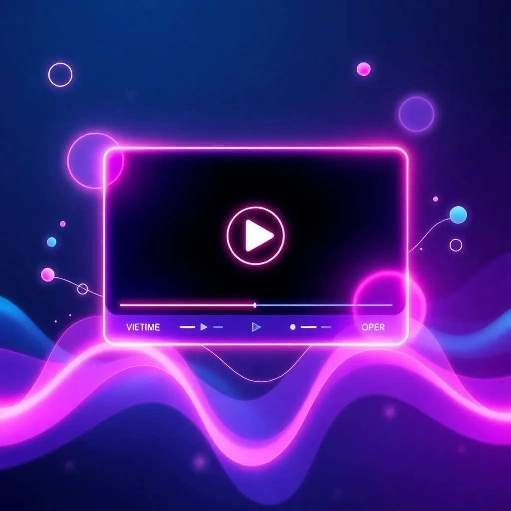 Create a futuristic and vibrant image showcasing a cutting-edge AI-powered video maker tool. Depict a sleek, minimalist interface with a play button in the center. Surrounding the interface, include abstract shapes and colors that evoke creativity, innovation, and technology. Incorporate subtle animations to bring the design to life.