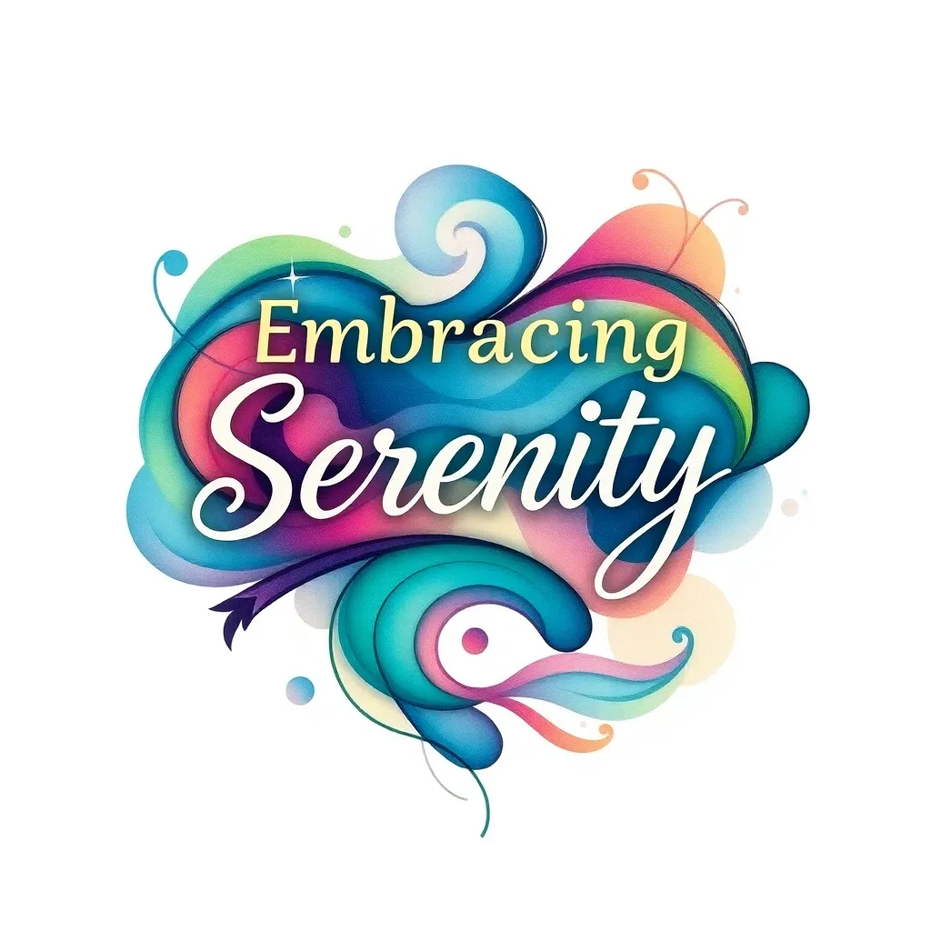 Design a vibrant, abstract tattoo inspired by the phrase 'Embracing Serenity'. Incorporate swirling patterns, calming colors, and subtle textures. The design should evoke a sense of peacefulness and tranquility. Incorporate elements that suggest movement, such as wispy tendrils or gentle waves, to add depth and visual interest.