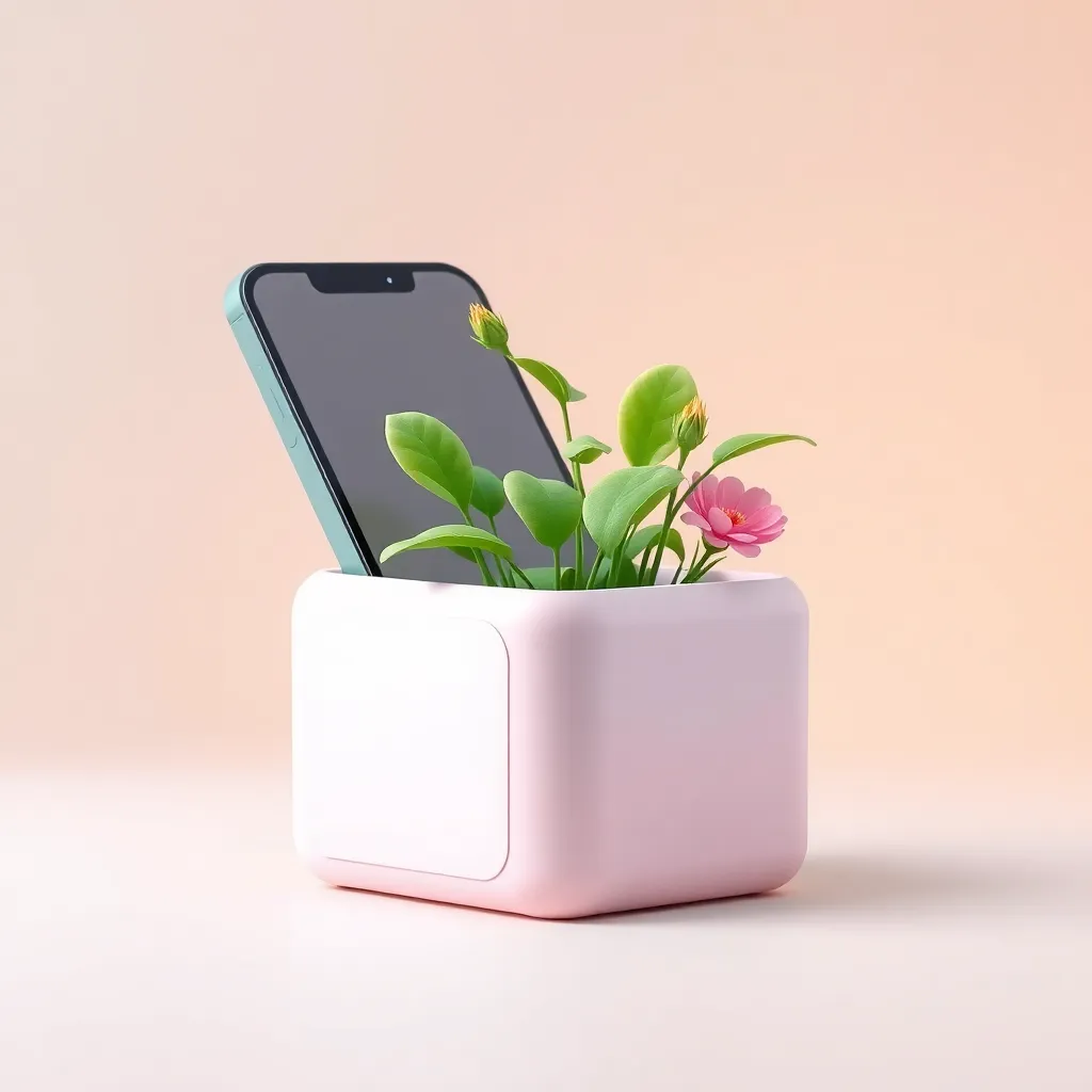 Create a visually appealing image for a YouTube Shorts video about a 'Morning Routine for Productivity'. The image should feature a person sipping coffee, sitting at a desk with a laptop, and surrounded by plants. Incorporate calming colors and a subtle background to evoke a sense of serenity and focus.
