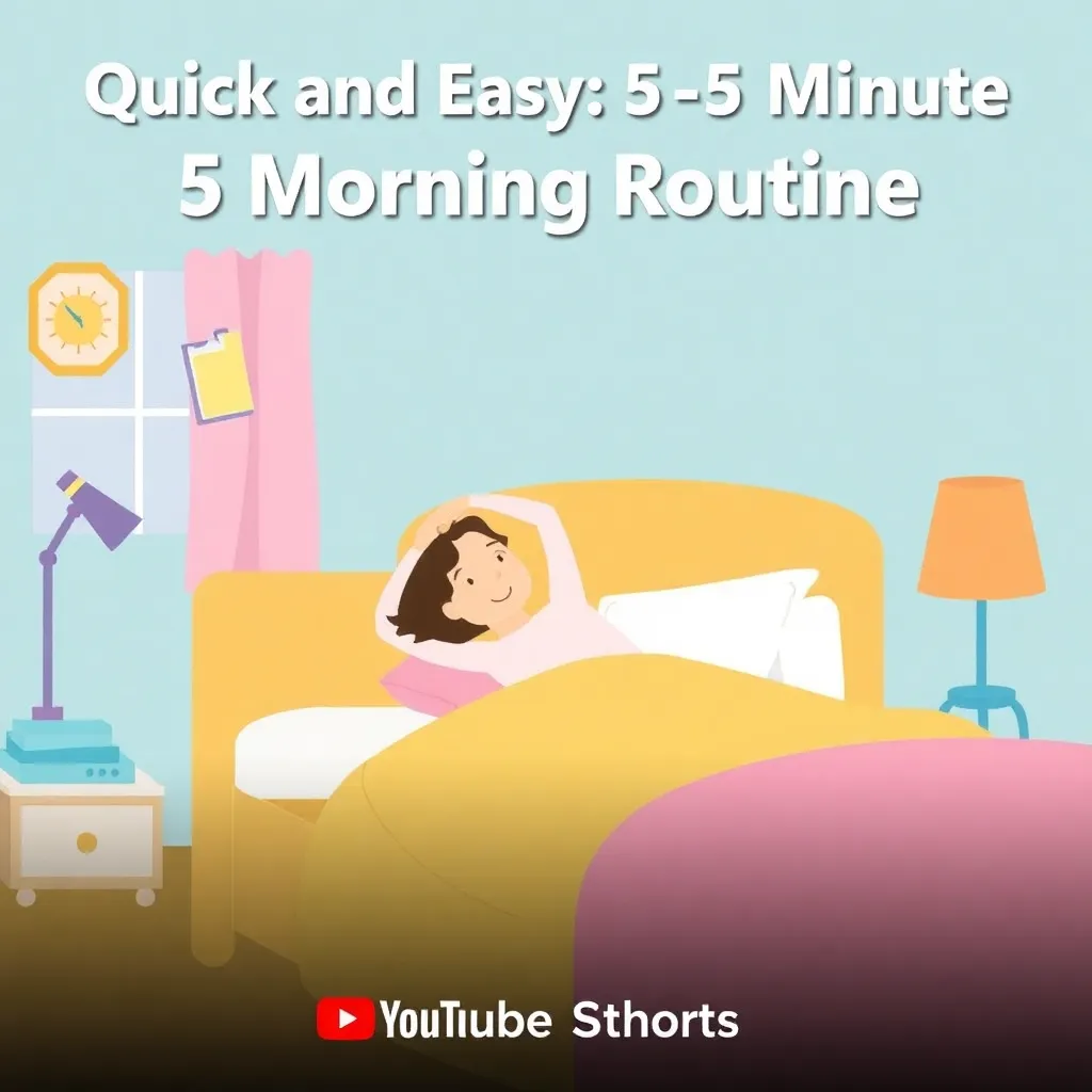Create a visually appealing animated image for a YouTube Shorts video about a 'Quick and Easy 5-Minute Morning Routine'. Incorporate simple illustrations of a person waking up, stretching, and doing a quick workout. Use bright colors and a modern design style to make it engaging and easy to understand.