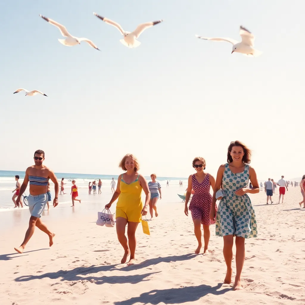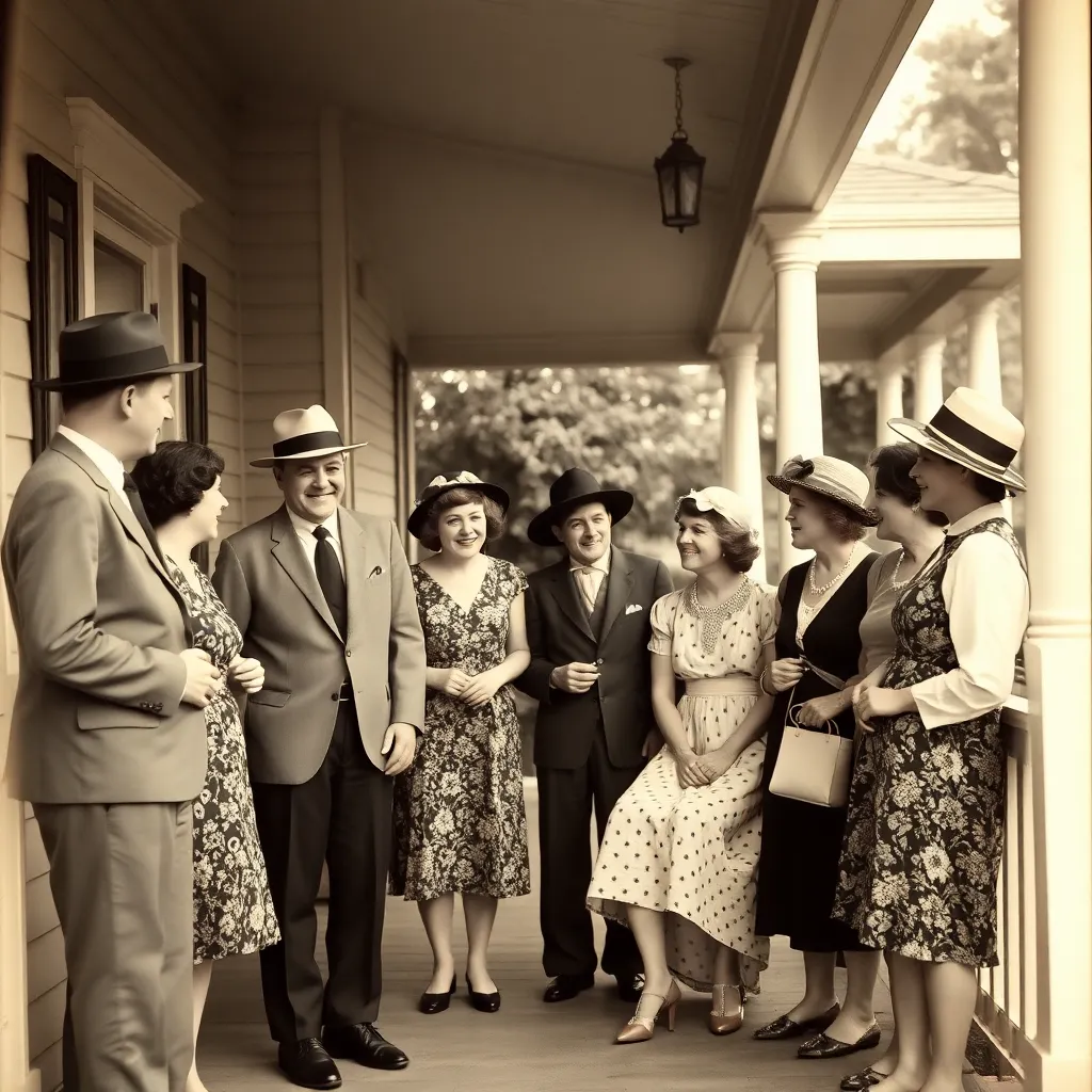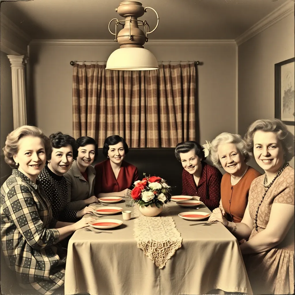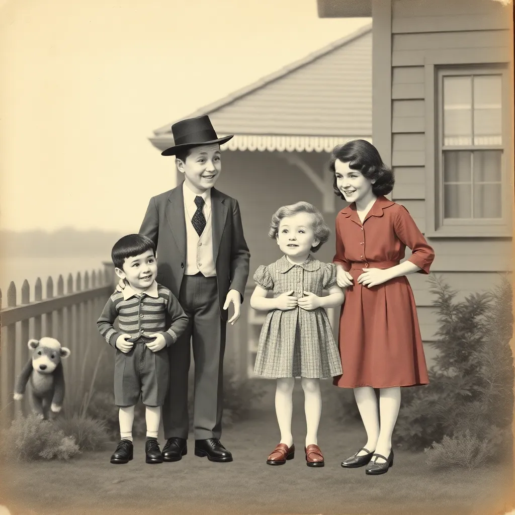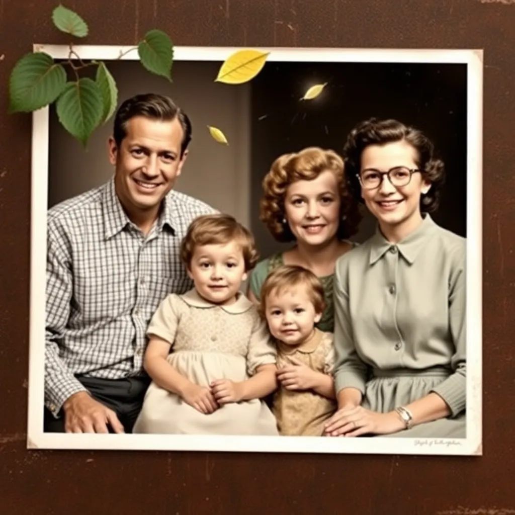 Bring to life a vintage family gathering from the 1950s. A warm summer afternoon, a sprawling backyard, and a group of loved ones laughing and embracing. Incorporate period-specific clothing, hairstyles, and props to create a nostalgic and inviting atmosphere. Add subtle animations to capture the joy and warmth of the moment.