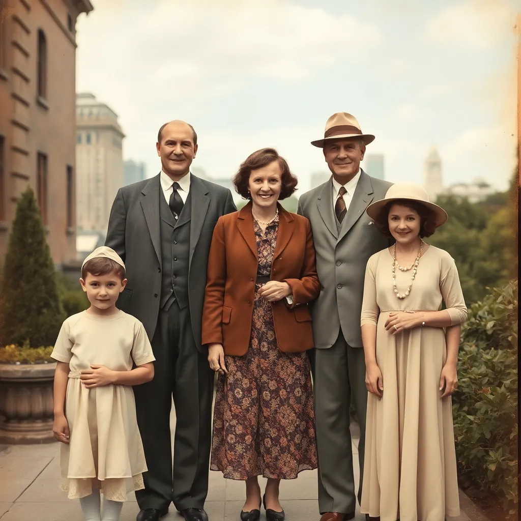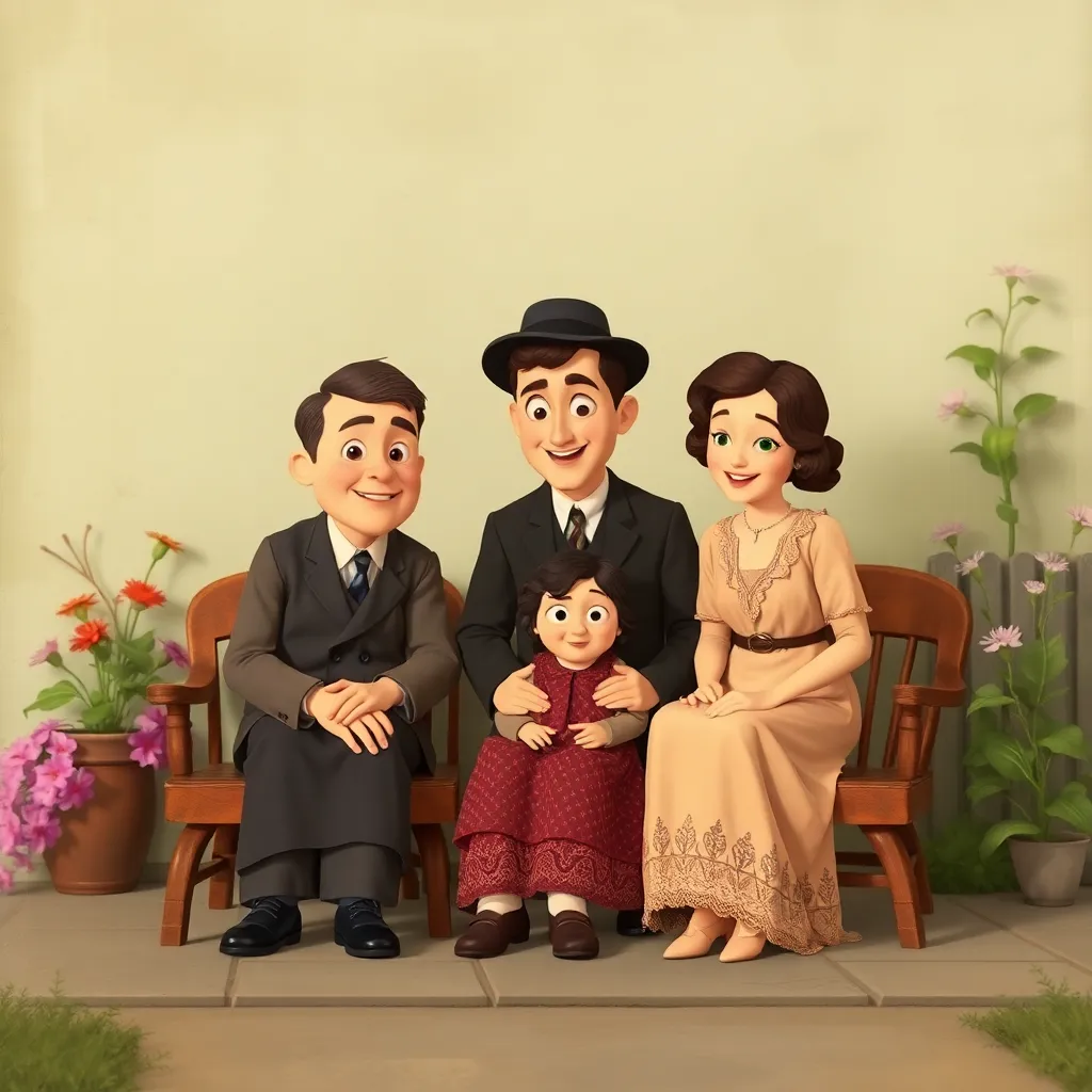 Revive nostalgic memories by animating old black and white photographs. Take a 1920s family portrait, add colorful outfits, and bring the characters to life with modern hairstyles and accessories. Create a whimsical scene with a vintage car, flowers, and a sunny day to transport viewers to a bygone era.