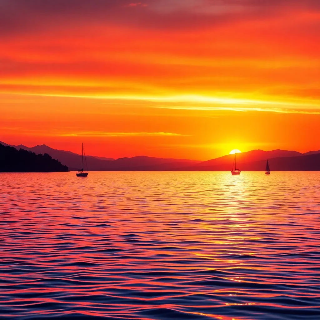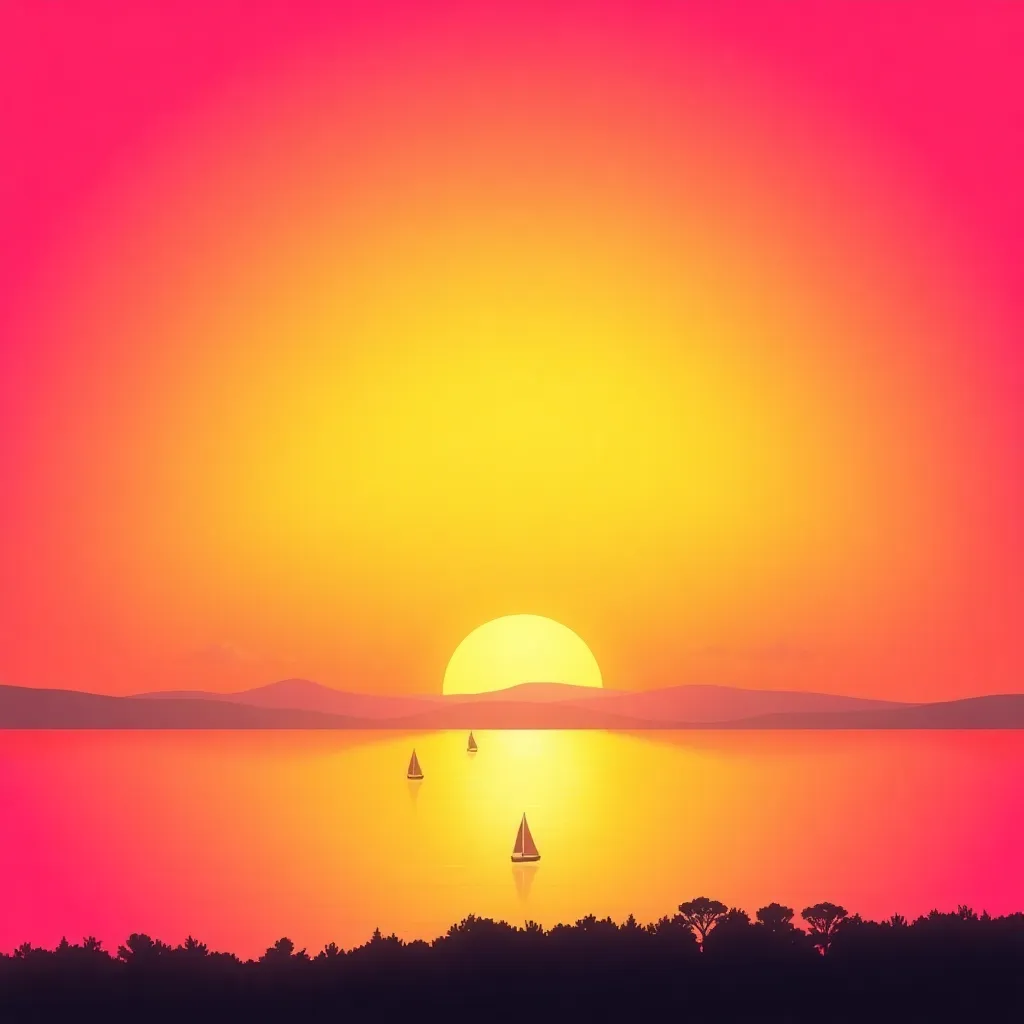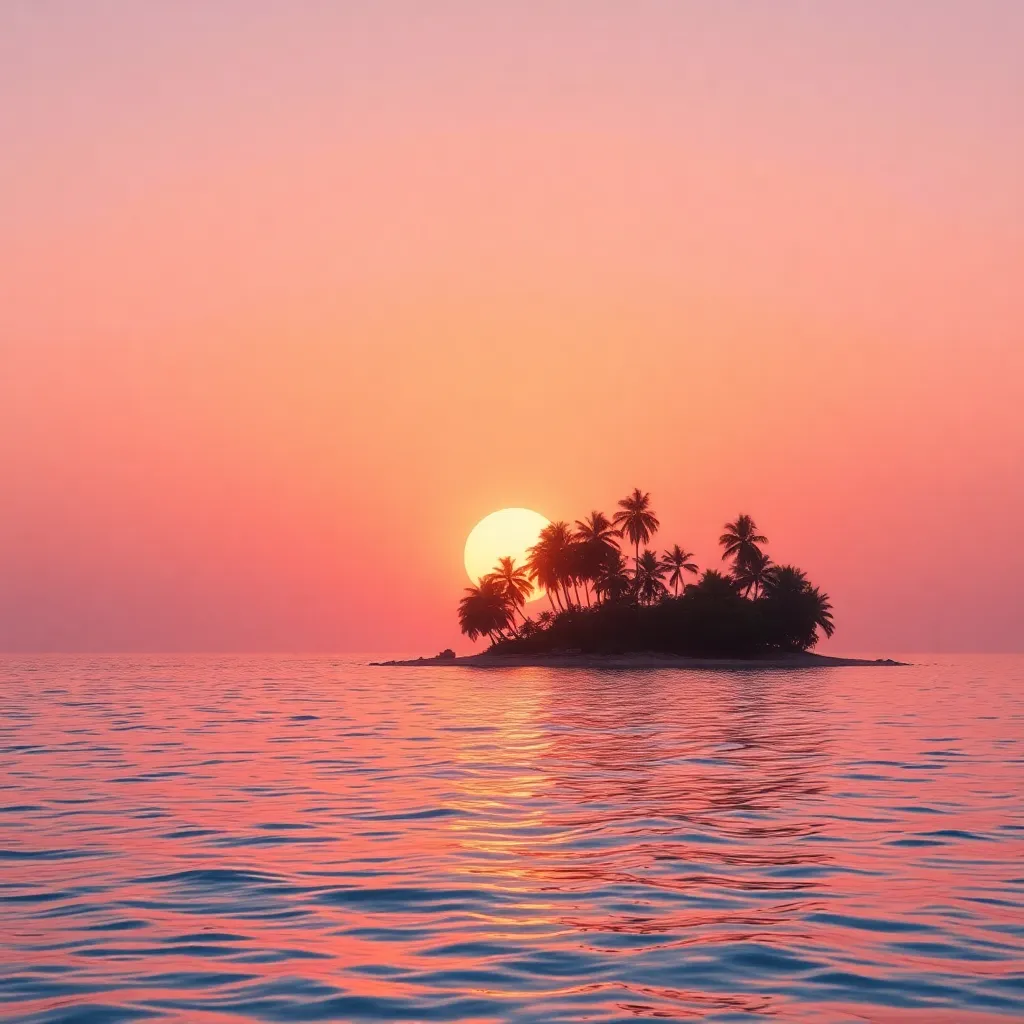 Imagine a serene sunset on a tropical island. A warm orange glow gradually transitions to a soft pink hue, casting a dreamy ambiance. Generate an AI image that captures this breathtaking scene, with a background color that changes from a vibrant orange to a soothing pink, inviting the viewer to escape.