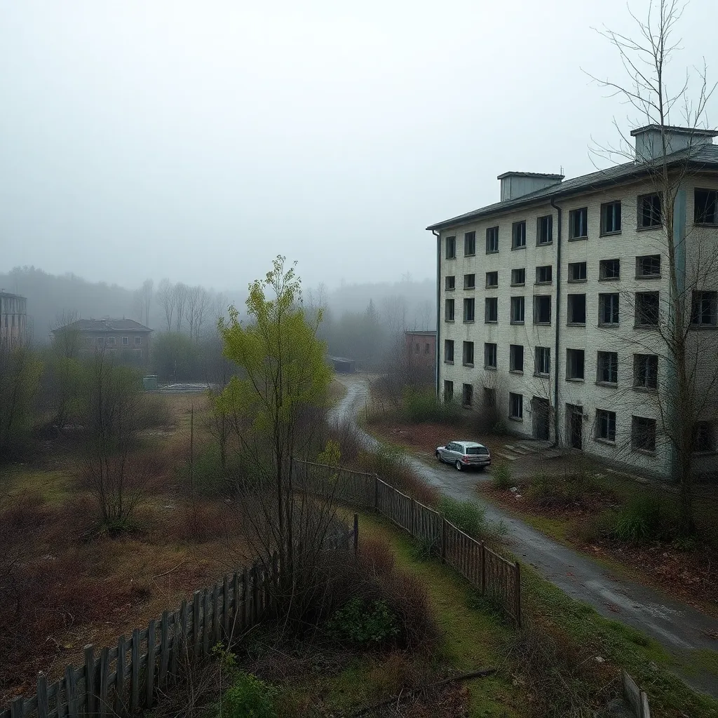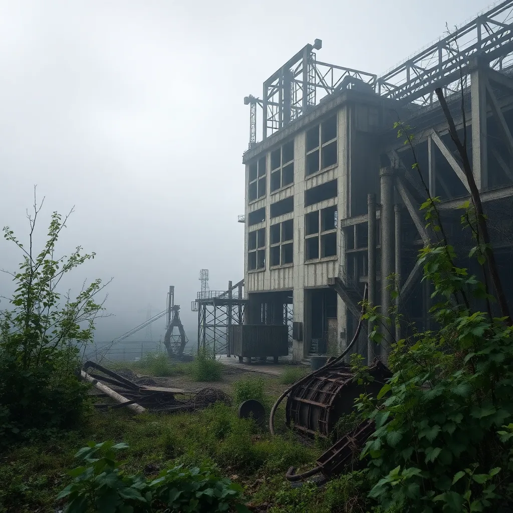 Imagine a hauntingly beautiful scene from a Chernobyl Tour. The abandoned cityscape is shrouded in a thick mist, with the iconic Reactor 4 building looming in the distance. The foreground is littered with overgrown vegetation and rusty machinery. The atmosphere is eerie and foreboding, yet strangely captivating.