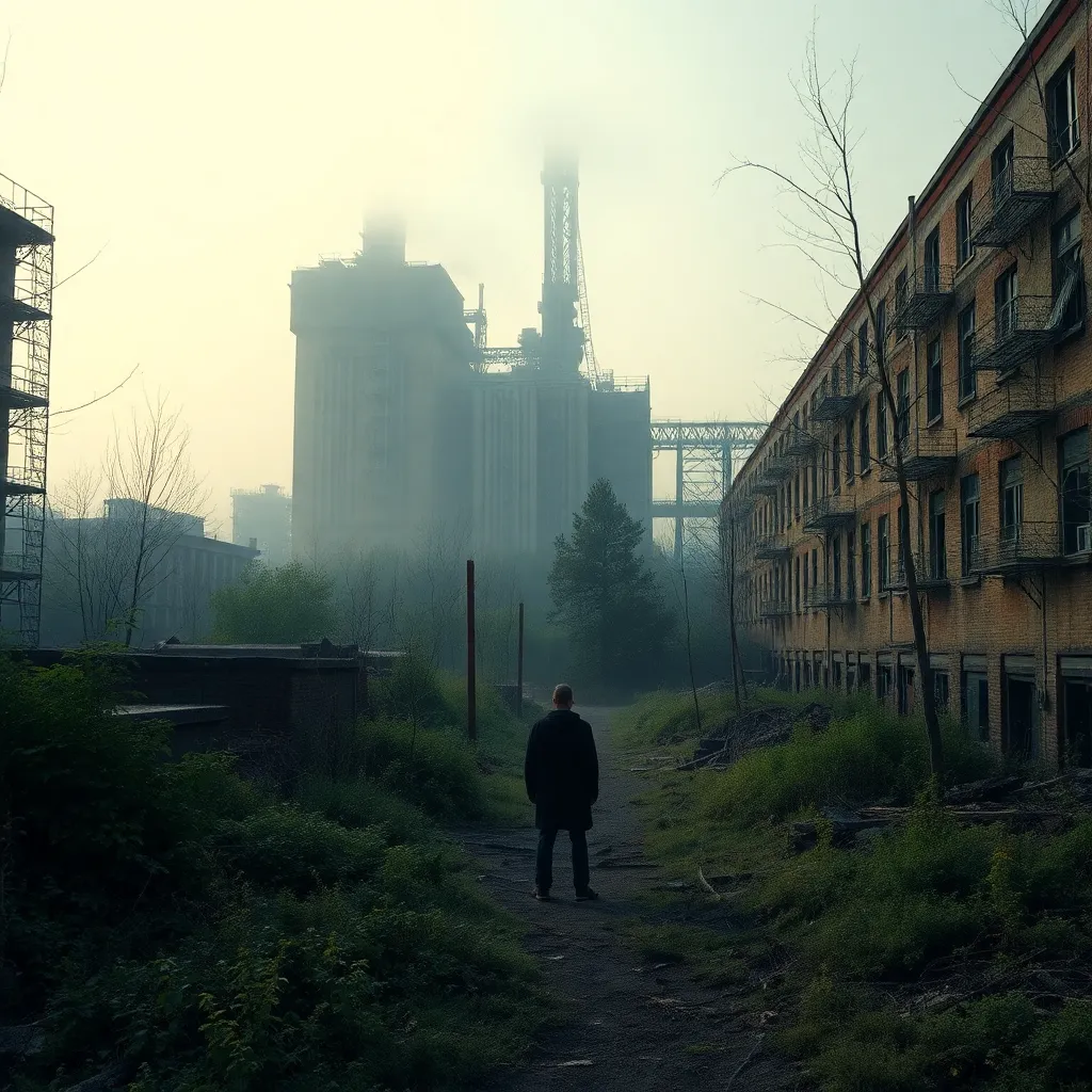 Imagine a hauntingly beautiful scene in the Chernobyl Exclusion Zone. A lone figure stands amidst the ruins of Pripyat, surrounded by crumbling buildings, overgrown vegetation, and a haunting mist. The iconic Reactor 4 looms in the distance, its twisted metal and concrete a stark reminder of the devastating catastrophe.