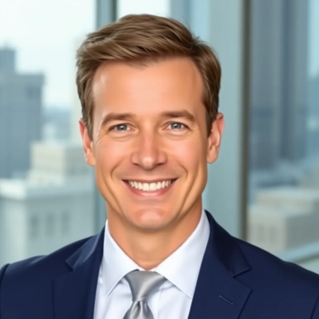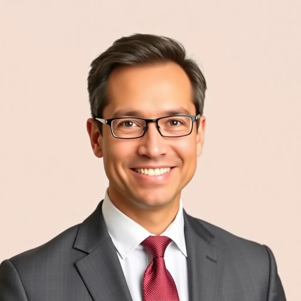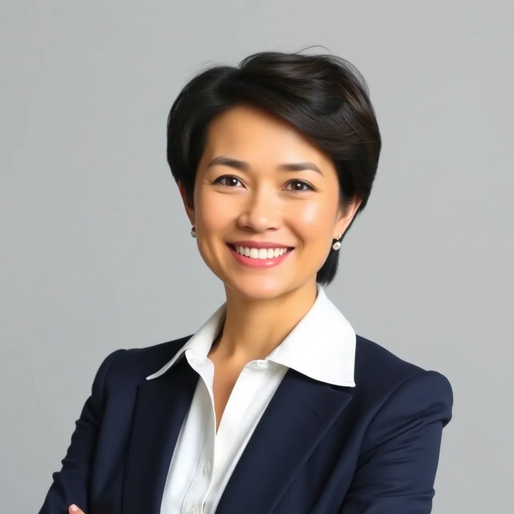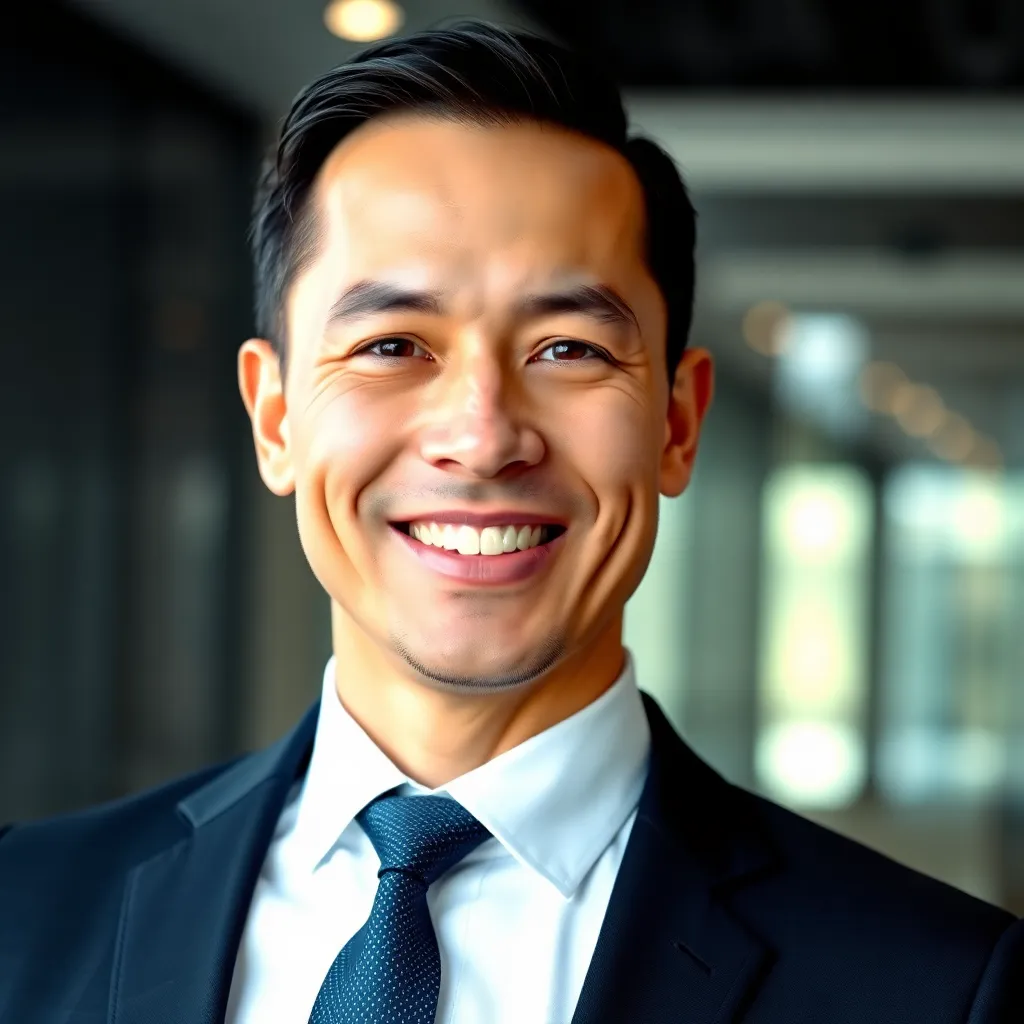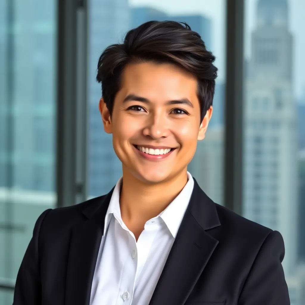 Capture the professional essence of a corporate executive. Imagine a well-dressed individual with a confident smile, sitting in a modern office setting with a subtle background. The lighting is soft and natural, highlighting their sharp features and attire. The mood is serious yet approachable, conveying authority and approachability.