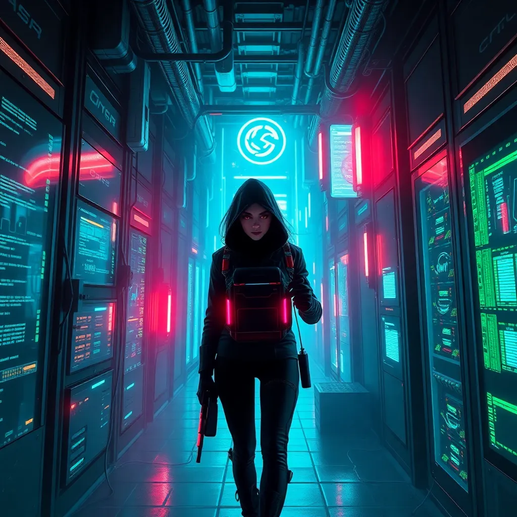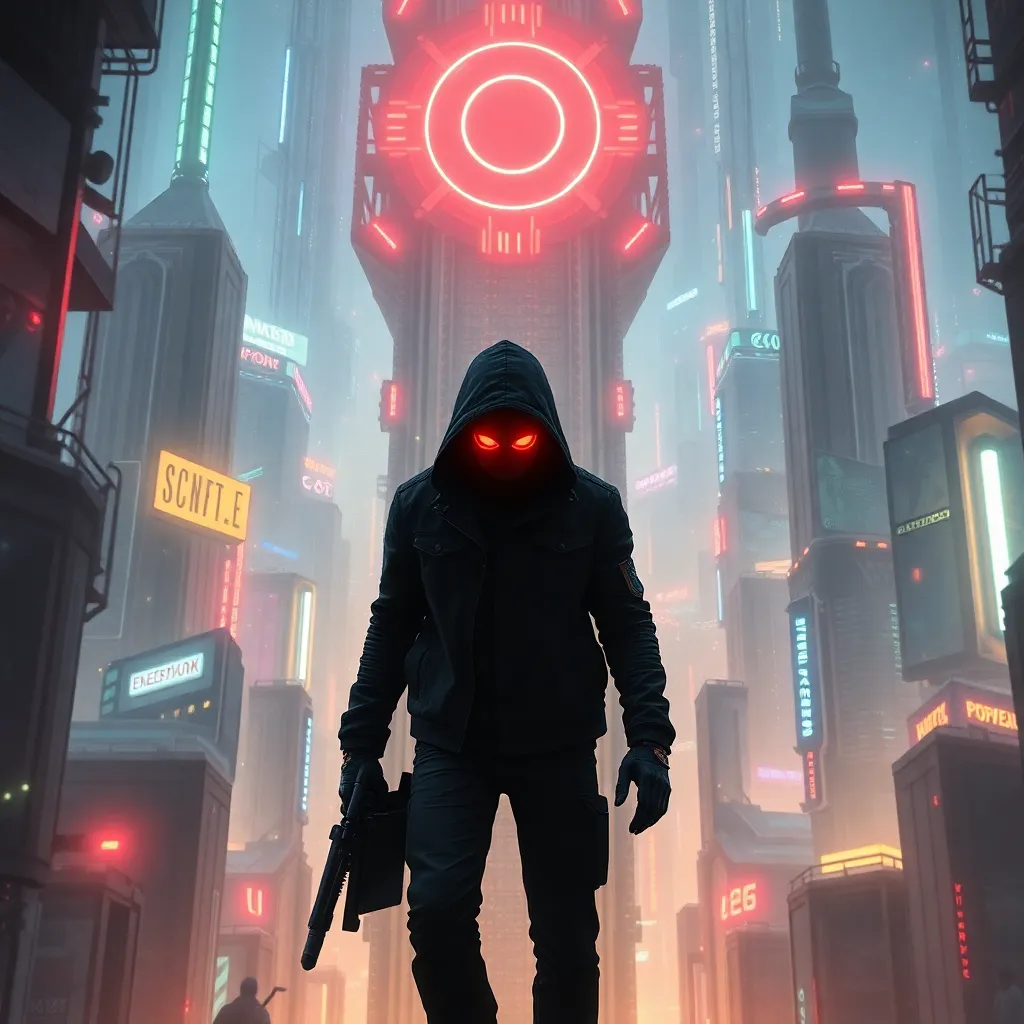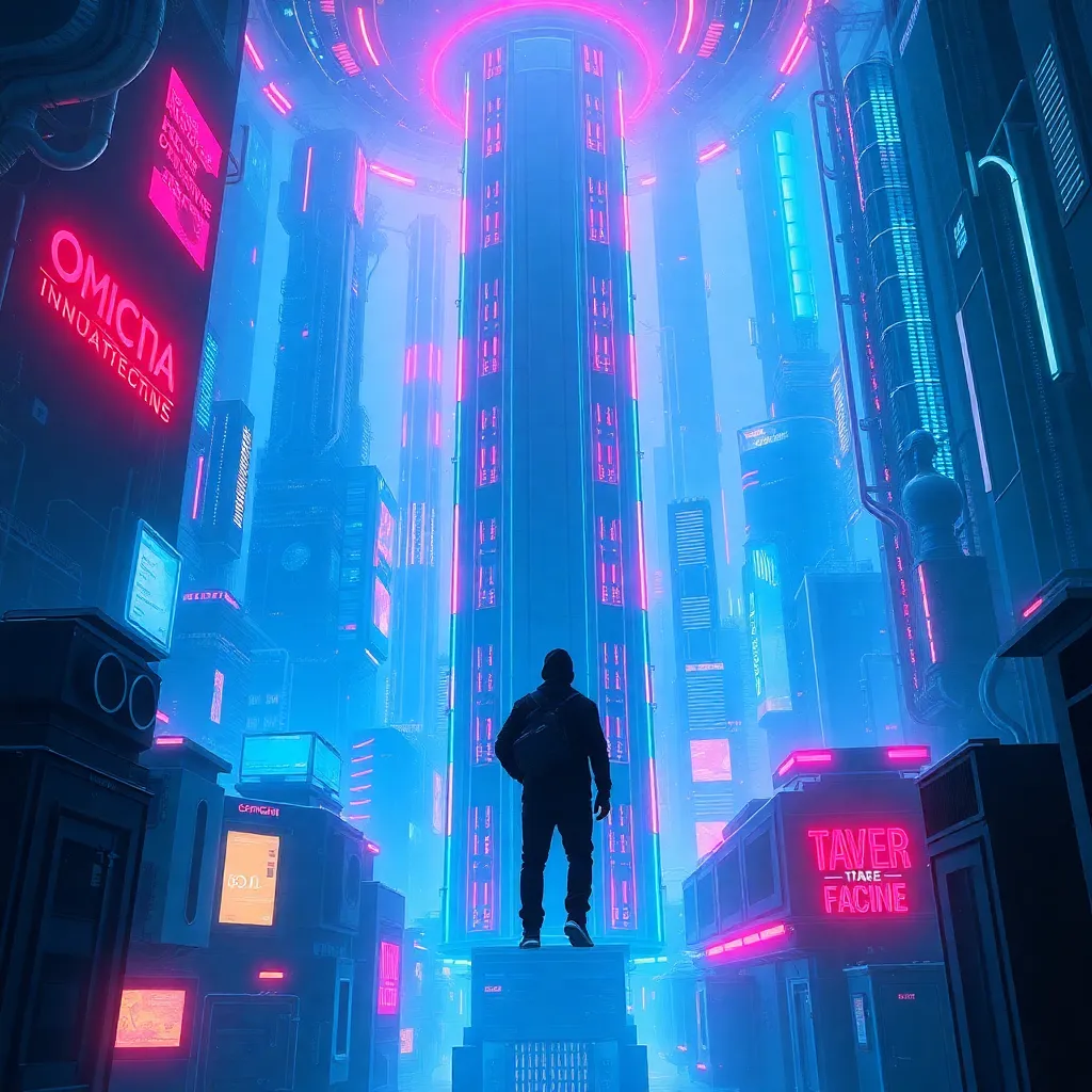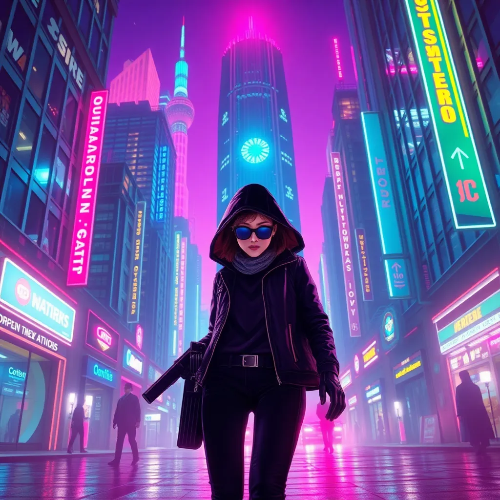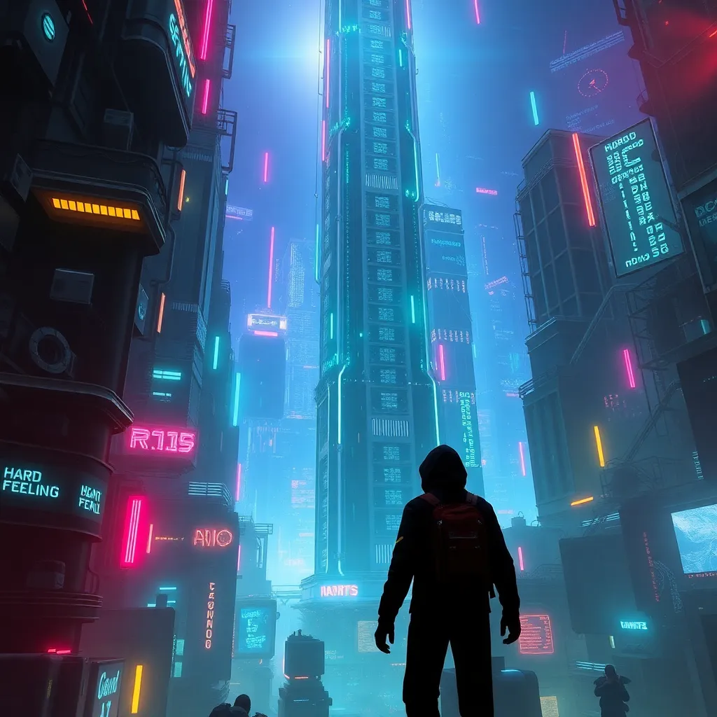 In the neon-drenched sprawl of New Eden, a lone hacker, Kael, infiltrates the corporate tower of Omicron Innovations to steal the latest AI upgrade. But as they navigate the labyrinthine corridors, they're confronted by the tower's ruthless security forces and a mysterious AI entity with a mind of its own.