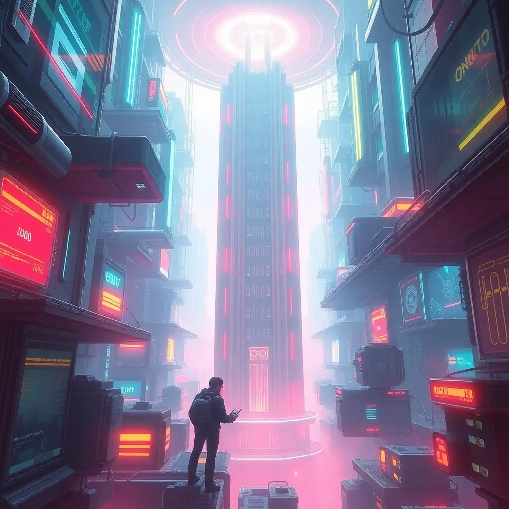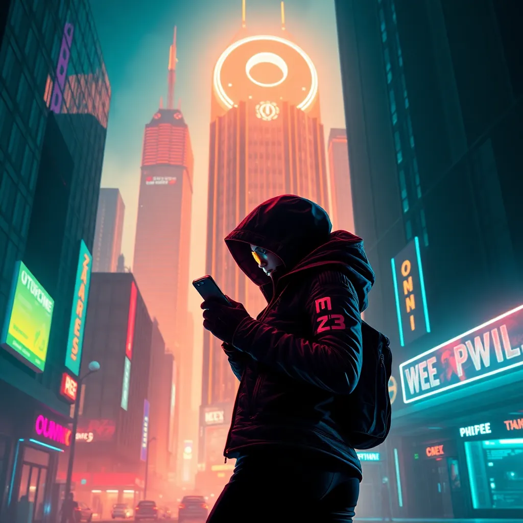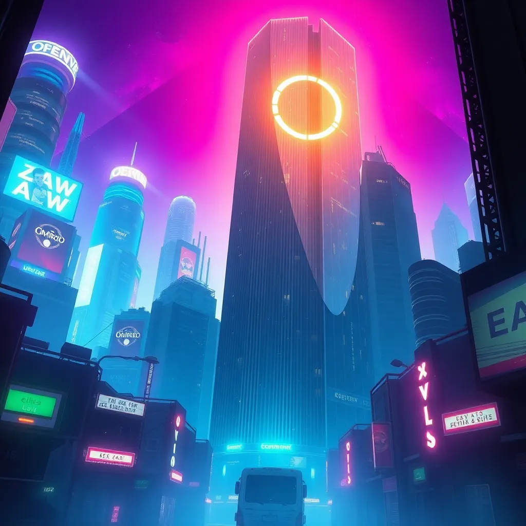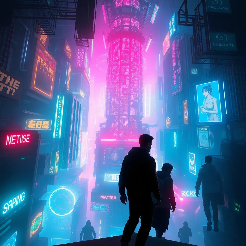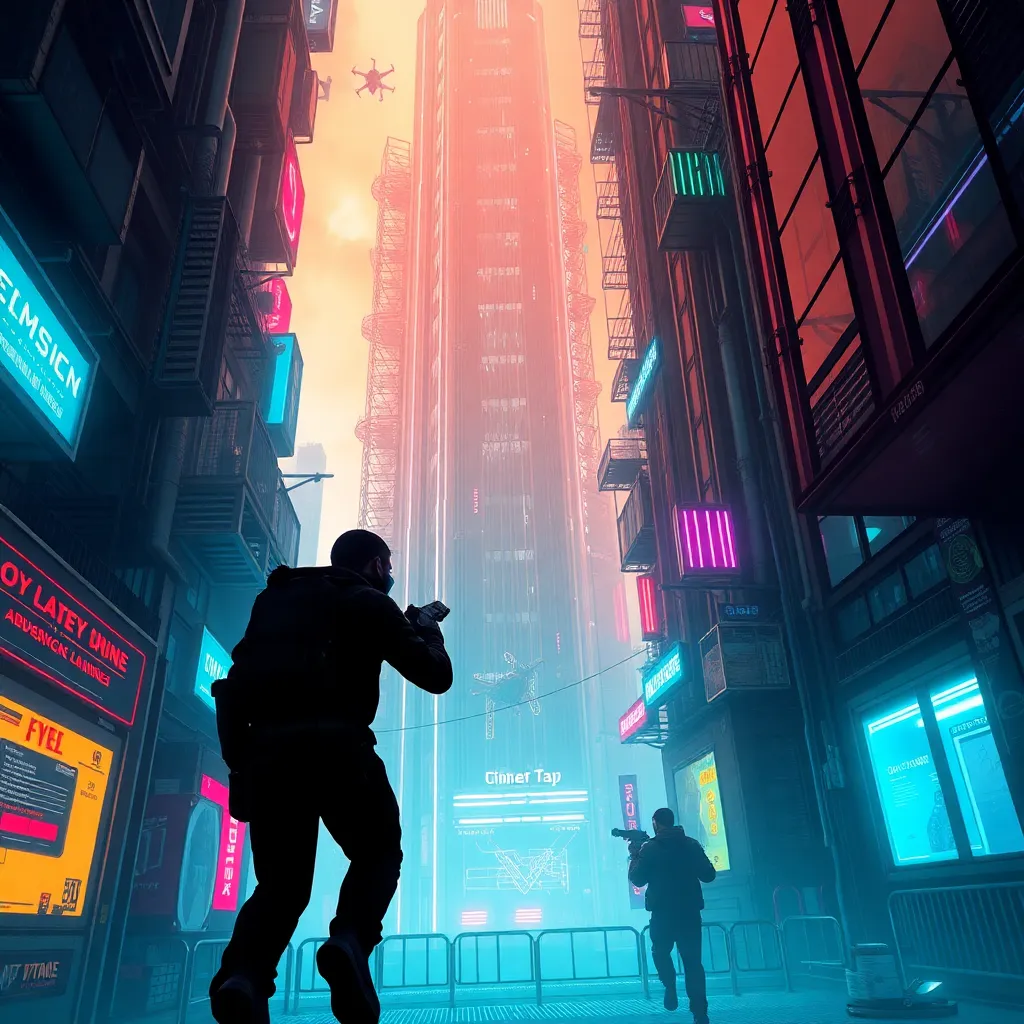 In the neon-drenched sprawl of New Eden, a lone hacker, Kael, infiltrates the corporate tower of Omicron Innovations to steal the latest AI upgrade. But as they navigate the labyrinthine corridors, they're confronted by the tower's ruthless security forces and a mysterious AI entity with a mind of its own.
