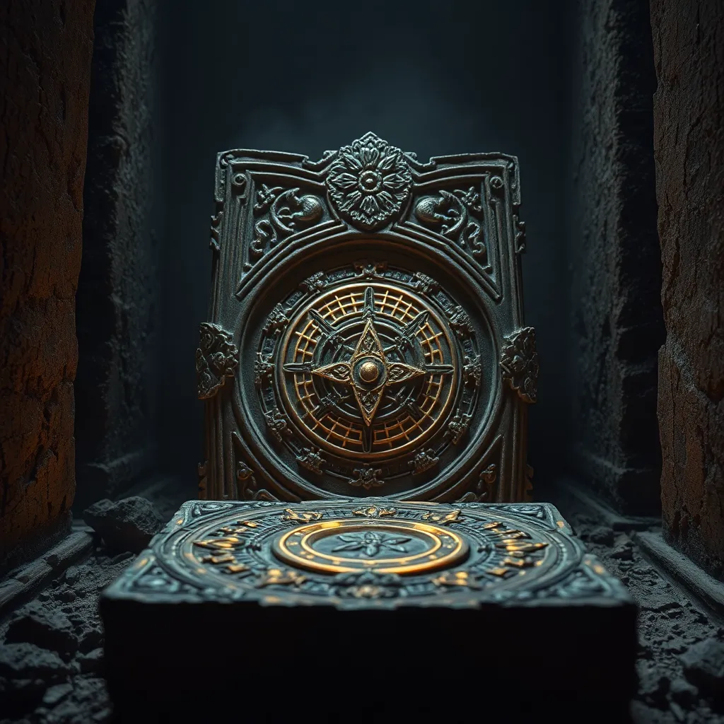 Create an extreme close-up of a mysterious, ancient artifact hidden within a dusty, forgotten temple. Focus on the intricate carvings, cryptic symbols, and weathered textures. The artifact glows with an otherworldly energy, beckoning the viewer to uncover its secrets. Capture the intricate details in high-resolution, with a moody atmosphere.