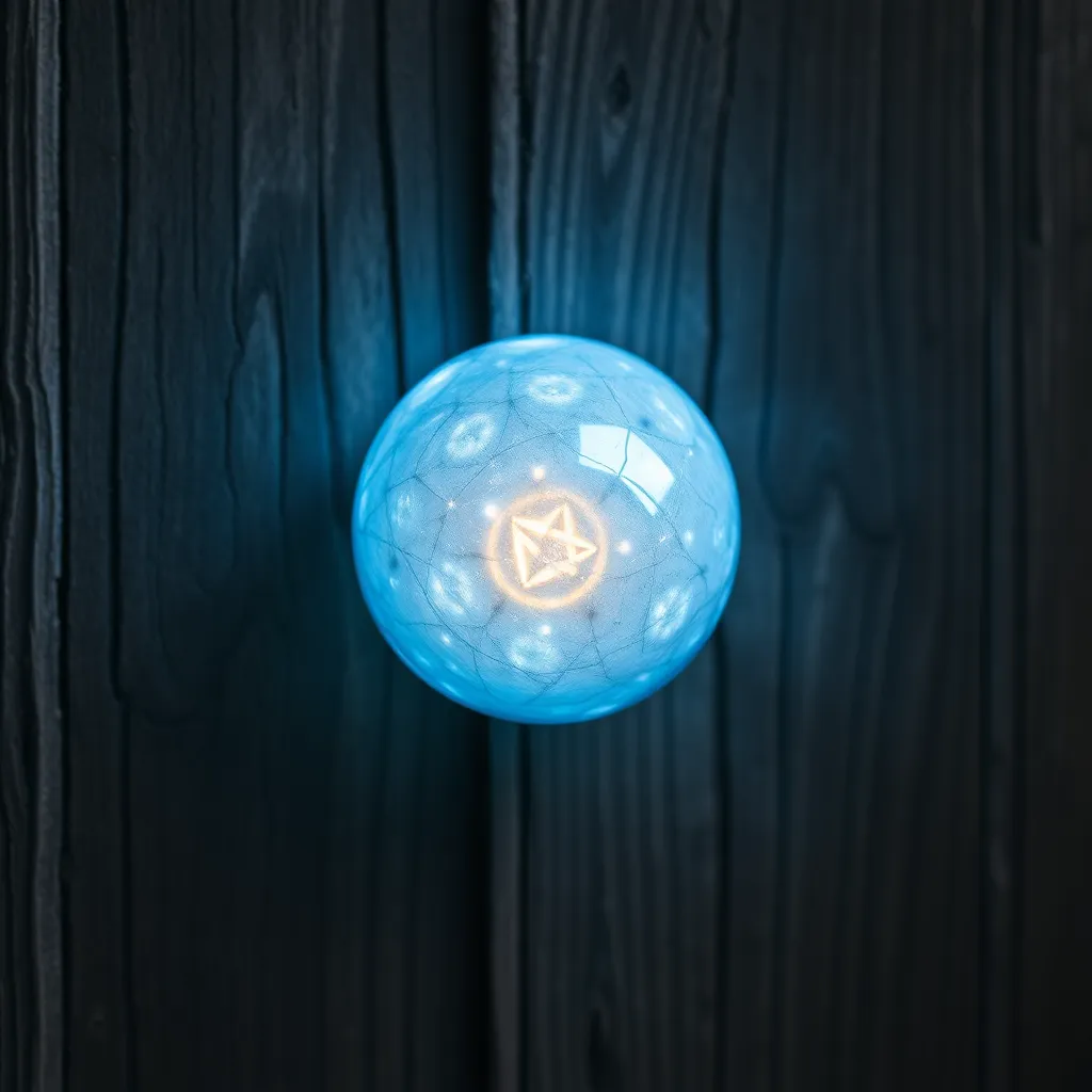 Create an extreme close-up of a mysterious, glowing orb, surrounded by intricate, swirling patterns. The orb's surface is cracked and worn, revealing a hint of iridescent colors beneath. The focus is sharp on the orb's texture, while the background is blurred, evoking a sense of otherworldly curiosity.