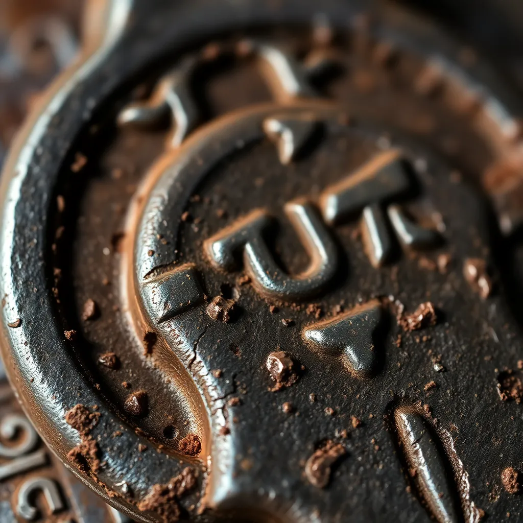 Create an extreme close-up of a mysterious, ancient artifact. The camera lens is inches from the intricate, worn surface, revealing the texture of aged wood, the glint of rusty metal, or the delicate etchings of a long-forgotten civilization. What secrets will be revealed in this up-close inspection?