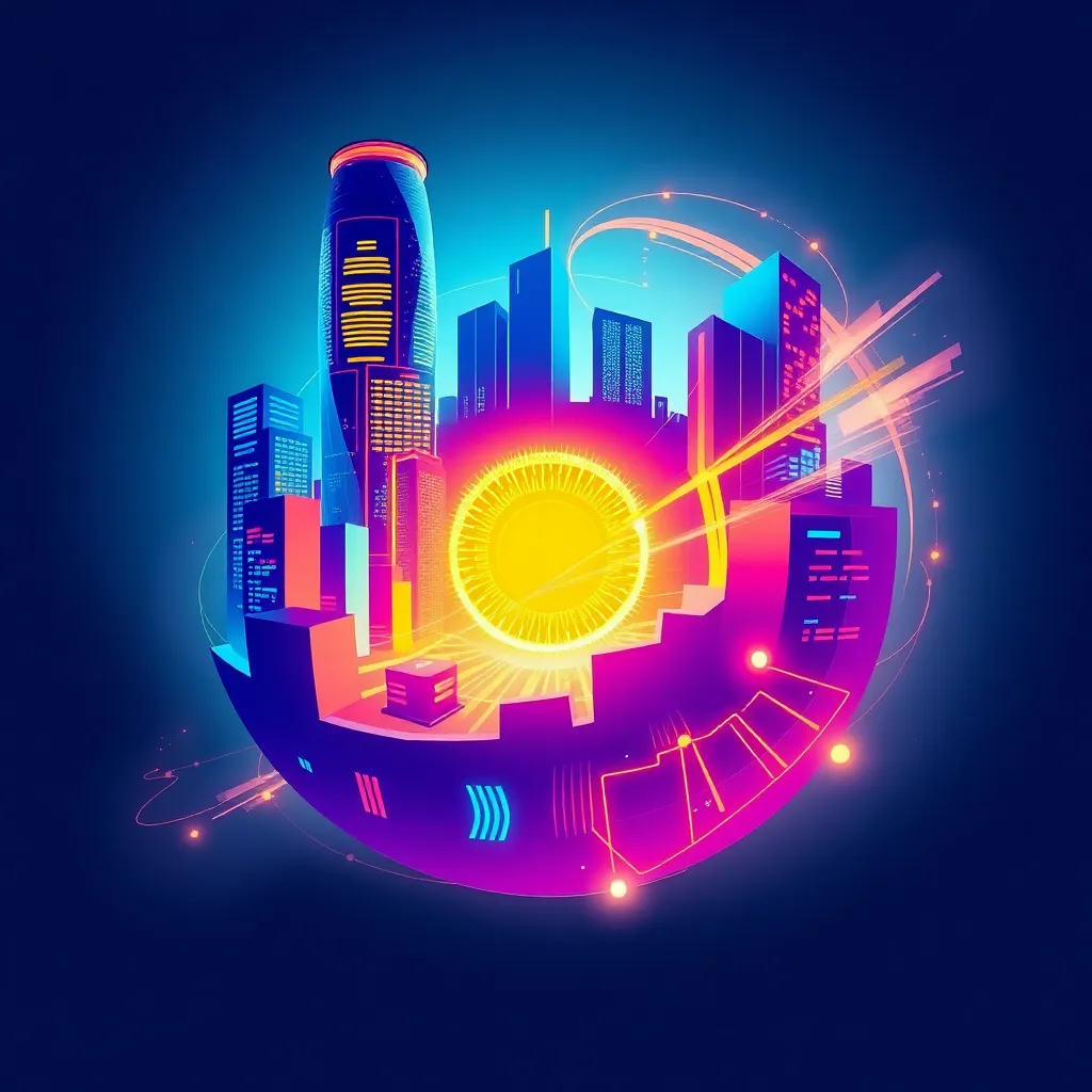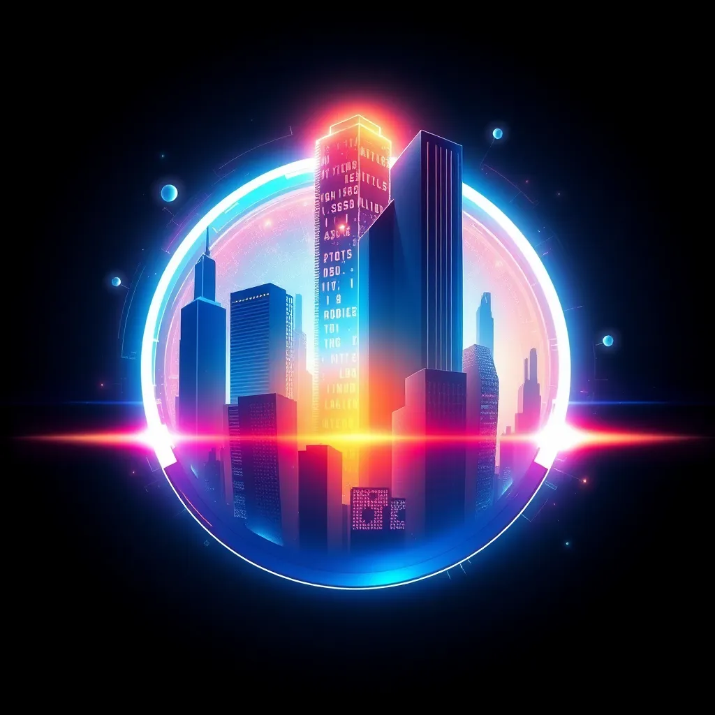 Create a mesmerizing logo animation that showcases a futuristic cityscape transforming into a vibrant, glowing logo. Incorporate swirling neon lights, pulsing circuits, and wispy clouds to convey innovation and energy. Use bold lines, geometric shapes, and a dynamic color palette to bring this futuristic design to life.