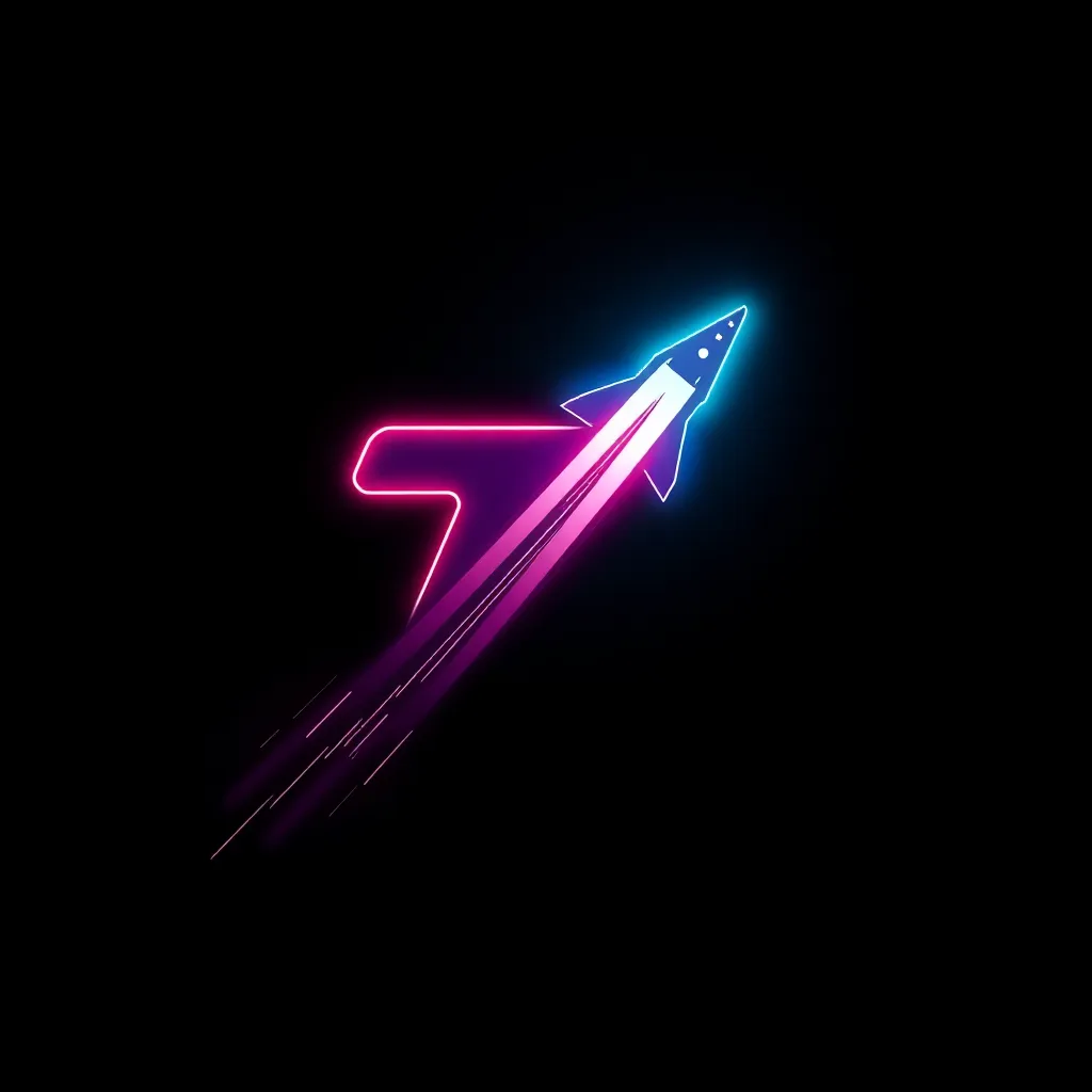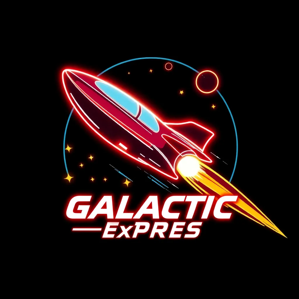 Create a logo animation for a futuristic transportation company, 'Galactic Express', showcasing a sleek spaceship soaring through the cosmos, leaving a trail of stars and planets in its wake. The animation should feature a bold, neon-lit design with dynamic movements and a sense of speed and adventure.