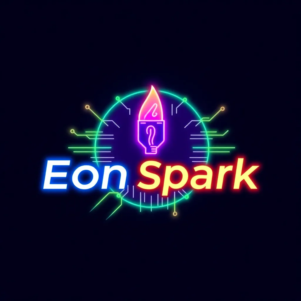 Create a vibrant logo animation for a futuristic tech startup, 'Eon Spark', featuring a stylized spark plug igniting a neon-lit circuit board, with dynamic transitions and kinetic typography. Incorporate bold lines, neon colors, and a sense of energy and innovation. Output a 15-second GIF animation.
