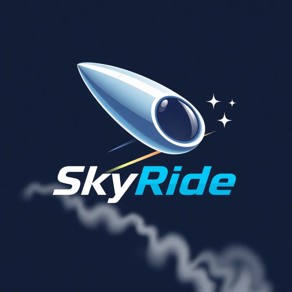 Create a logo animation for a futuristic transportation company, 'SkyRide'. The animation should feature a sleek, silver bullet-shaped vehicle soaring through the clouds, leaving a trail of sparkling stars behind. Incorporate a bold, modern font and a vibrant color scheme to convey speed, innovation, and adventure.