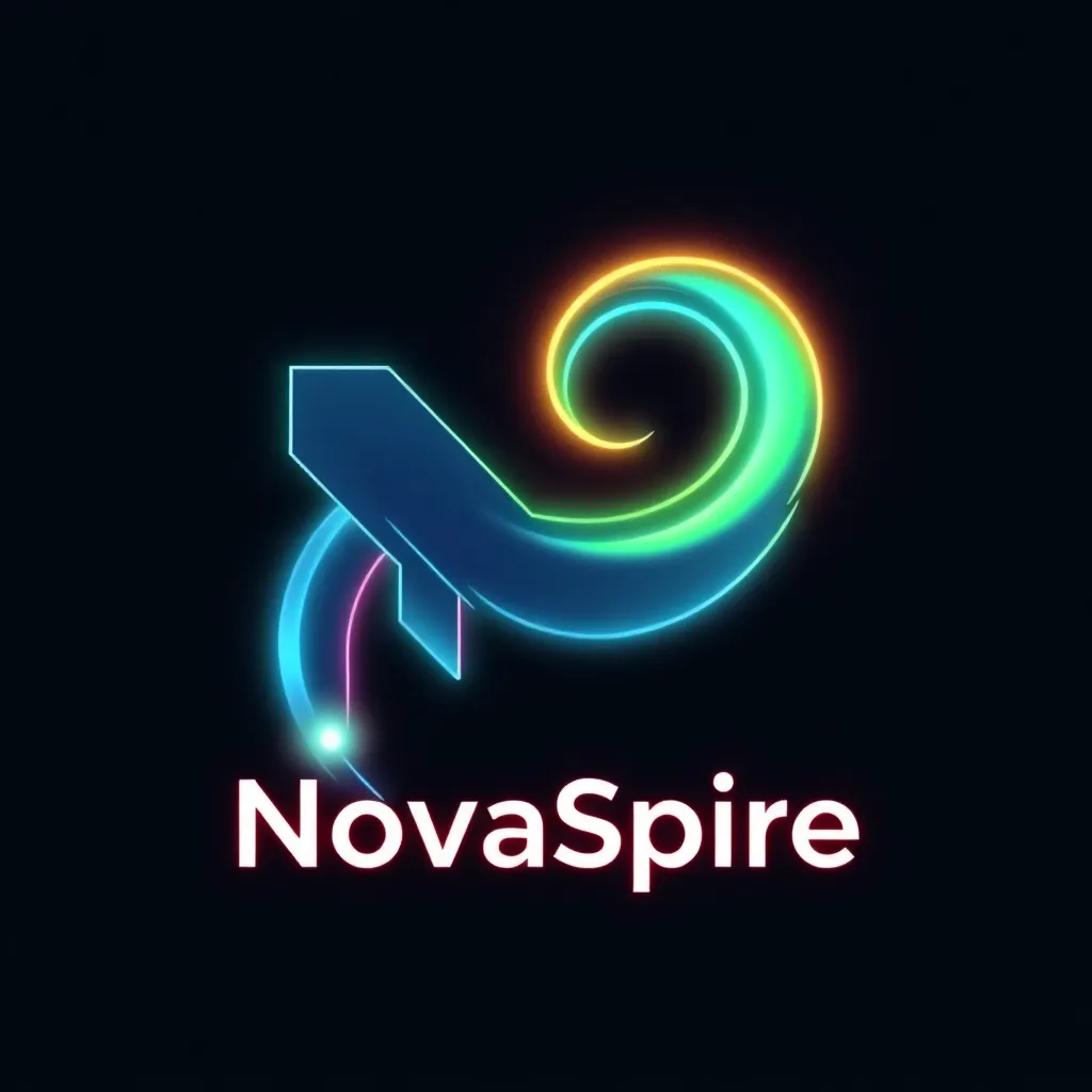 Create a logo animation for a futuristic tech startup, 'NovaSpire', that represents innovation and growth. The animation should feature a stylized 'N' symbol morphing into a spiral shape, surrounded by glowing circuit boards and neon lights, with a subtle nod to space exploration. Use bold colors and dynamic movements.