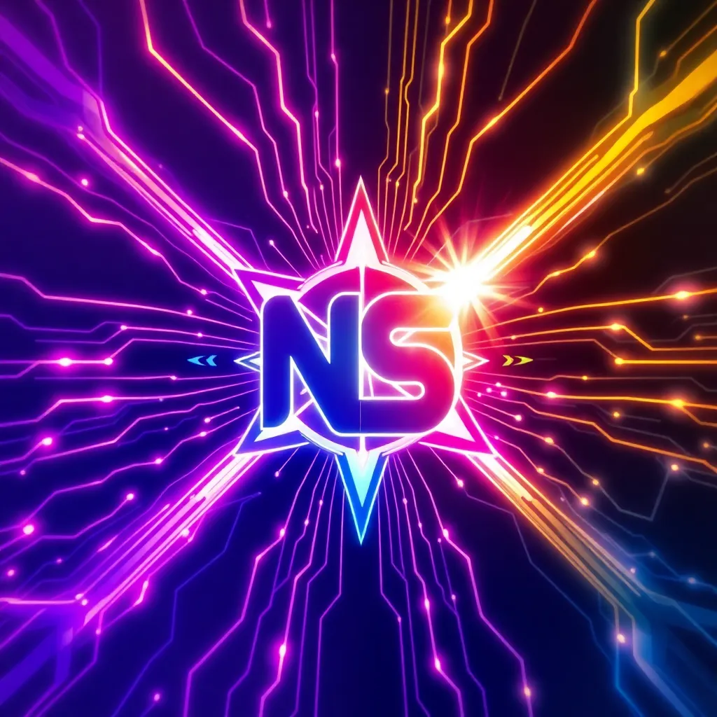 Create a mesmerizing logo animation for a futuristic tech company, 'NovaSpark'. The animation should feature a stylized 'NS' logo morphing into a sparkling star, surrounded by swirling neon lights and pulsing circuits. Incorporate a dynamic color scheme and a sense of movement to convey innovation and energy.