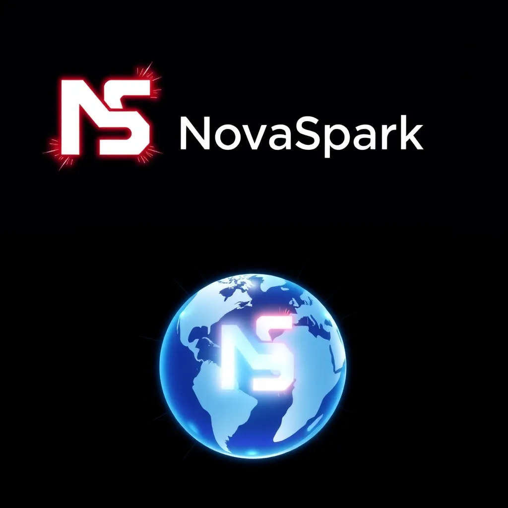 Create a dynamic logo animation for a futuristic tech company called 'NovaSpark'. The logo features a stylized 'NS' monogram with neon lights and sparks surrounding it. The animation should transition from a static logo to a 3D rotating globe with the logo embedded, accompanied by a futuristic sound effect.