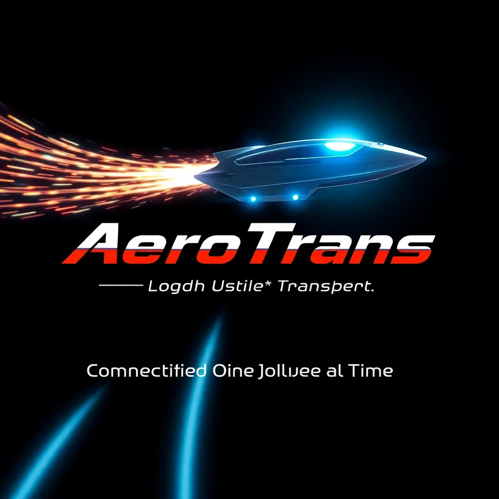 Create a logo animation for a futuristic transportation company, 'AeroTrans', featuring a sleek spaceship soaring through the night sky, leaving a trail of sparks and glowing blue lights in its wake, with the company name and tagline 'Connecting the World, One Journey at a Time' appearing in bold, futuristic font.
