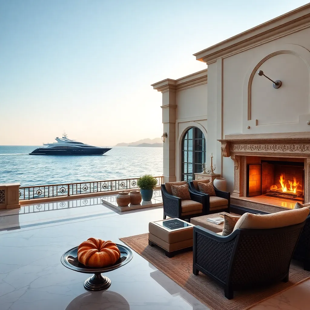 Imagine a serene and opulent villa overlooking the sparkling Mediterranean Sea. A sleek, black yacht glides effortlessly across the water. Inside, lavish furnishings and marble floors meet the warmth of a crackling fireplace. The scent of freshly baked croissants wafts from the kitchen, where a personal chef awaits your arrival.