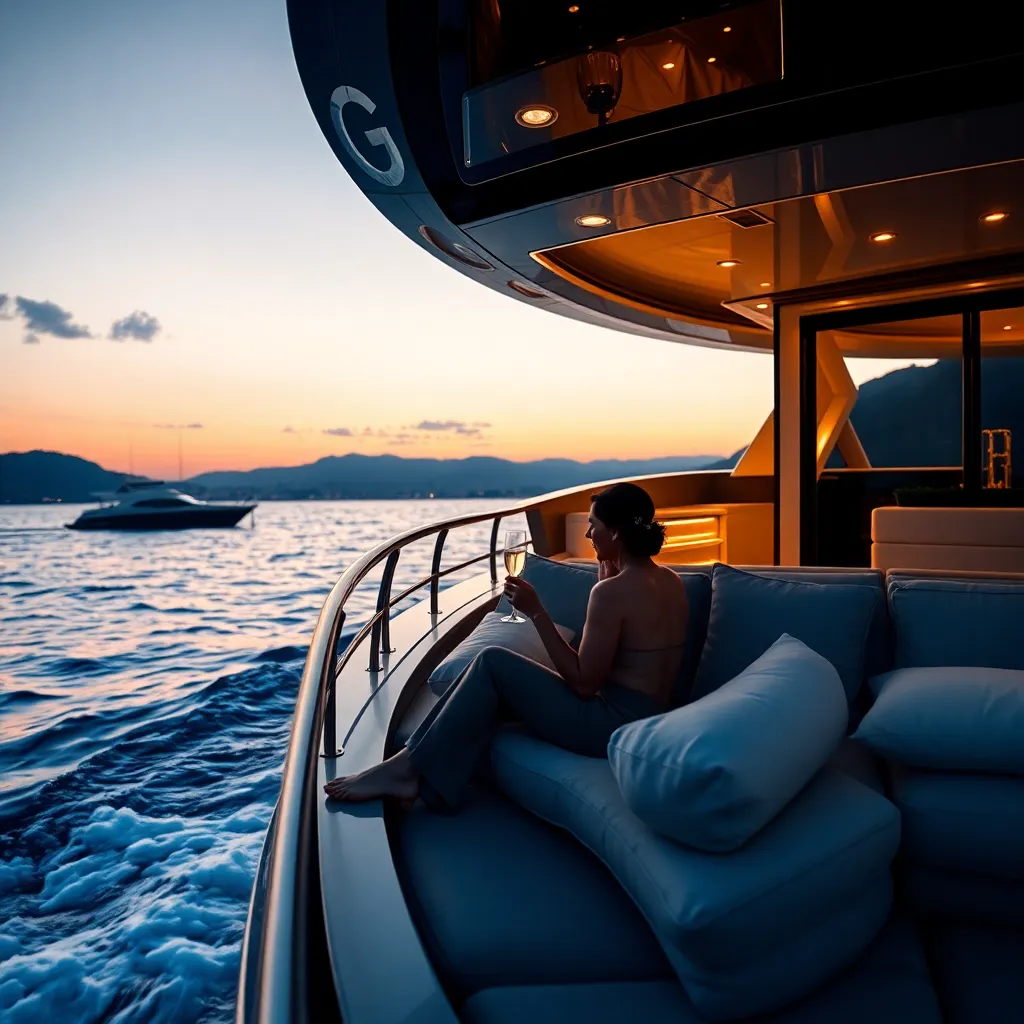 Imagine a serene summer evening on the French Riviera. A sleek, black yacht glides across the sparkling Mediterranean Sea, its luxurious deck illuminated by soft, golden lights. A glass of champagne in hand, a stylish couple lounges on plush cushions, surrounded by the opulent ambiance of a high-end resort.