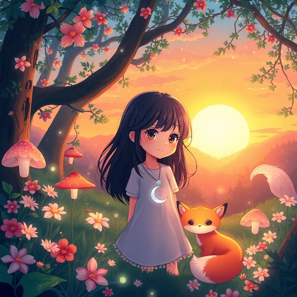 Create a stunning anime-inspired artwork of a mystical forest at sunset. Incorporate vibrant colors, whimsical creatures, and intricate details. Use the Photo To Anime Converter to transform a photograph into a unique anime-style image, blending realistic elements with fantastical features. Let your imagination run wild!