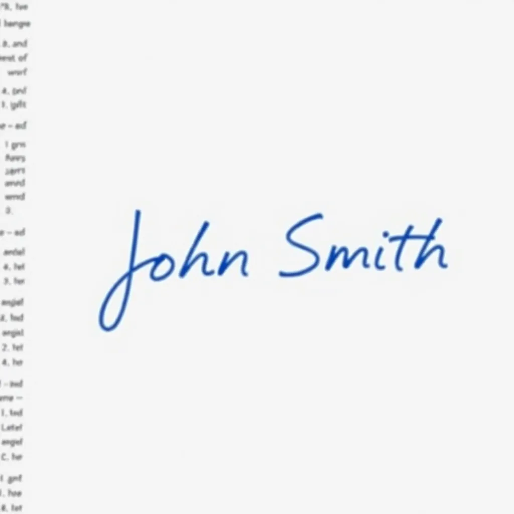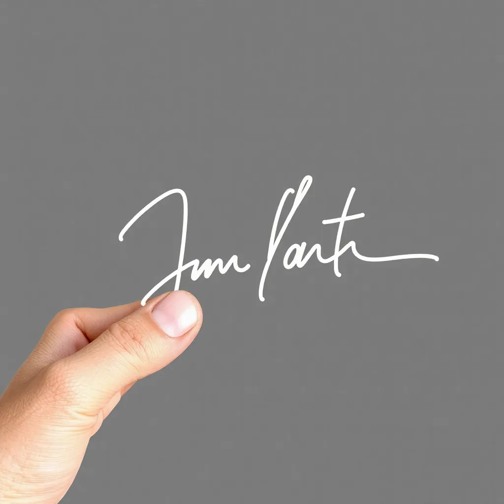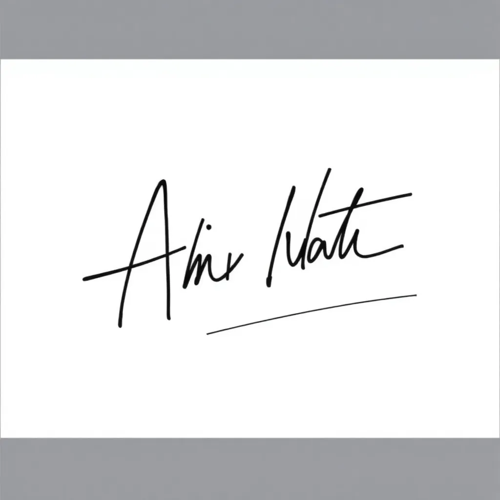 Create an AI-generated image by removing the background from a signature. Provide a high-quality image of a handwritten signature with a complex background. Use AI to isolate the signature and generate a transparent PNG or GIF with a clean, white background. Perfect for digital signature pads, websites, and marketing materials.