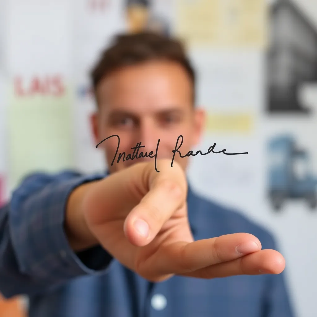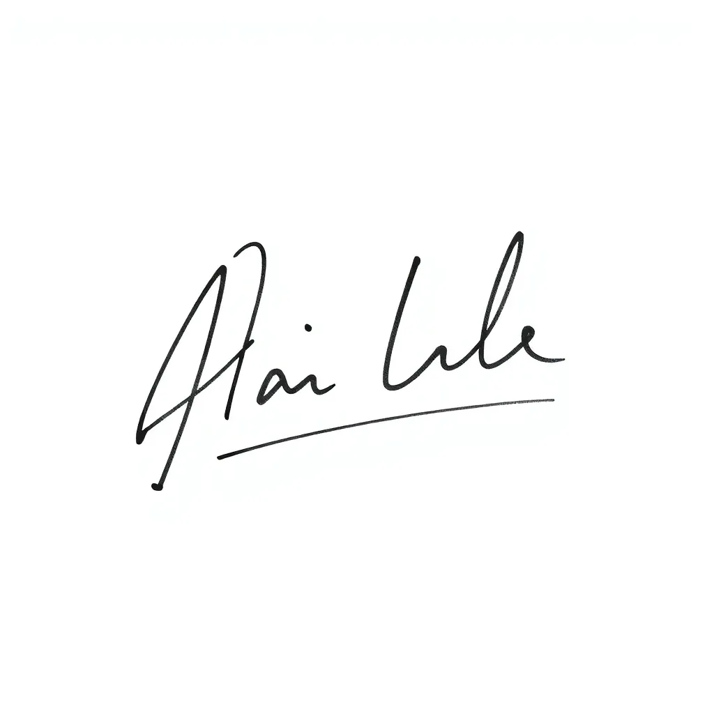 Create an AI-generated image by removing the background from a signature. Provide a high-quality image of a handwritten signature with a distracting background. Use AI to automatically remove the background, preserving the signature's details. The output should be a transparent PNG image with a crisp, isolated signature.