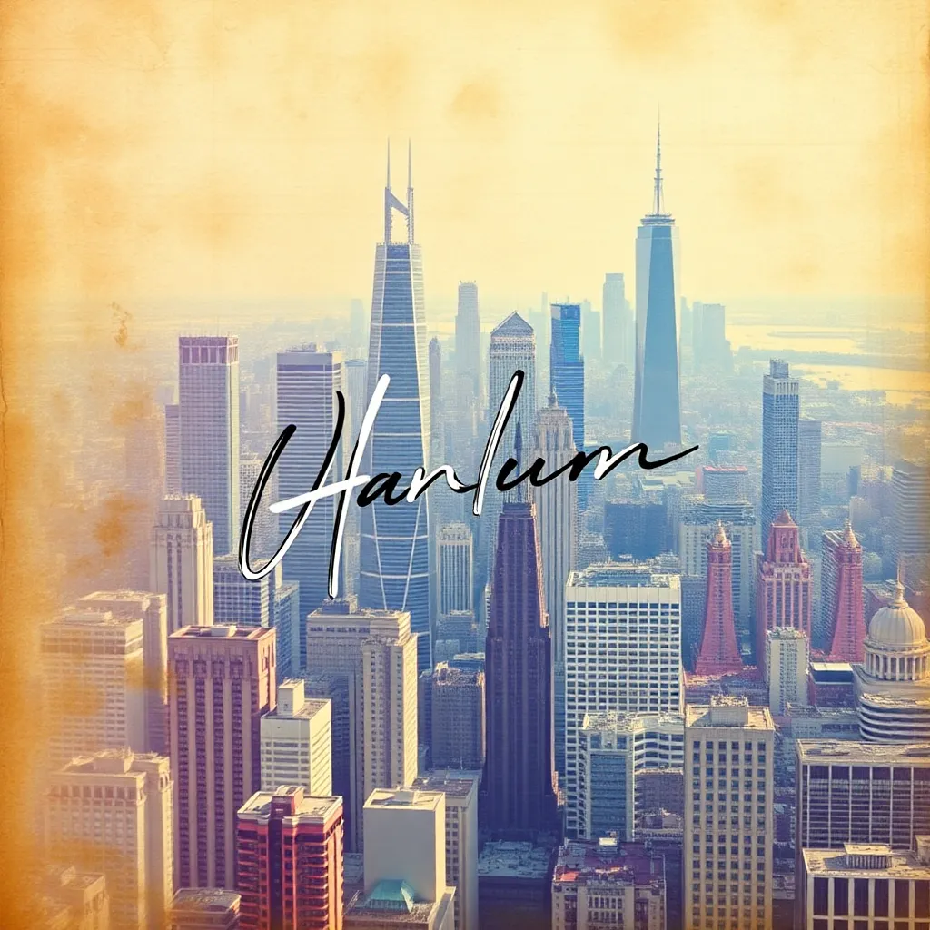 Create an AI-generated image of a futuristic cityscape with a signature removed from a vintage document. The signature should be replaced with a stylized logo or pattern. Use vibrant colors and bold lines to make the cityscape stand out. Incorporate subtle textures and shading to give it a realistic look.