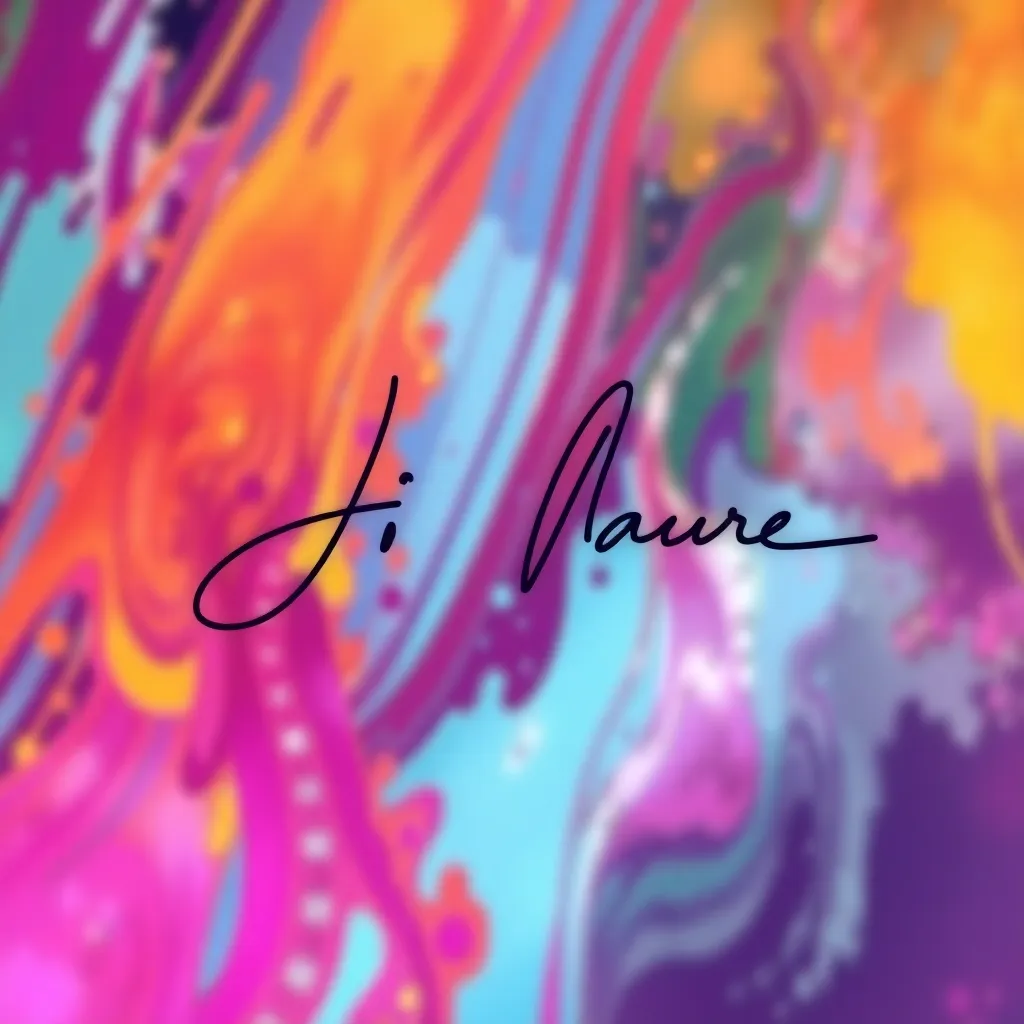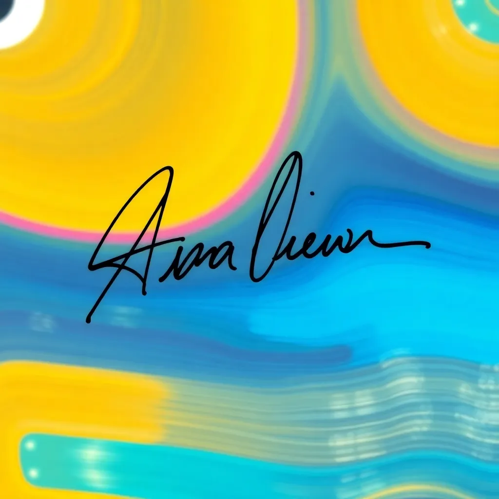 Create a stylized AI image of a signature with a unique background. Remove the original background and replace it with a vibrant, abstract design that complements the signature's font and style. The resulting image should be visually striking and attention-grabbing, perfect for use as a logo or marketing material.