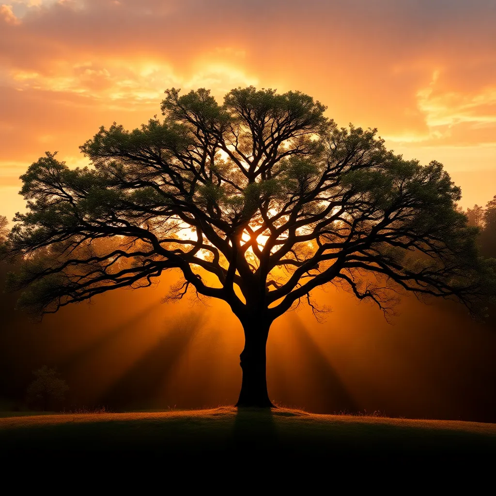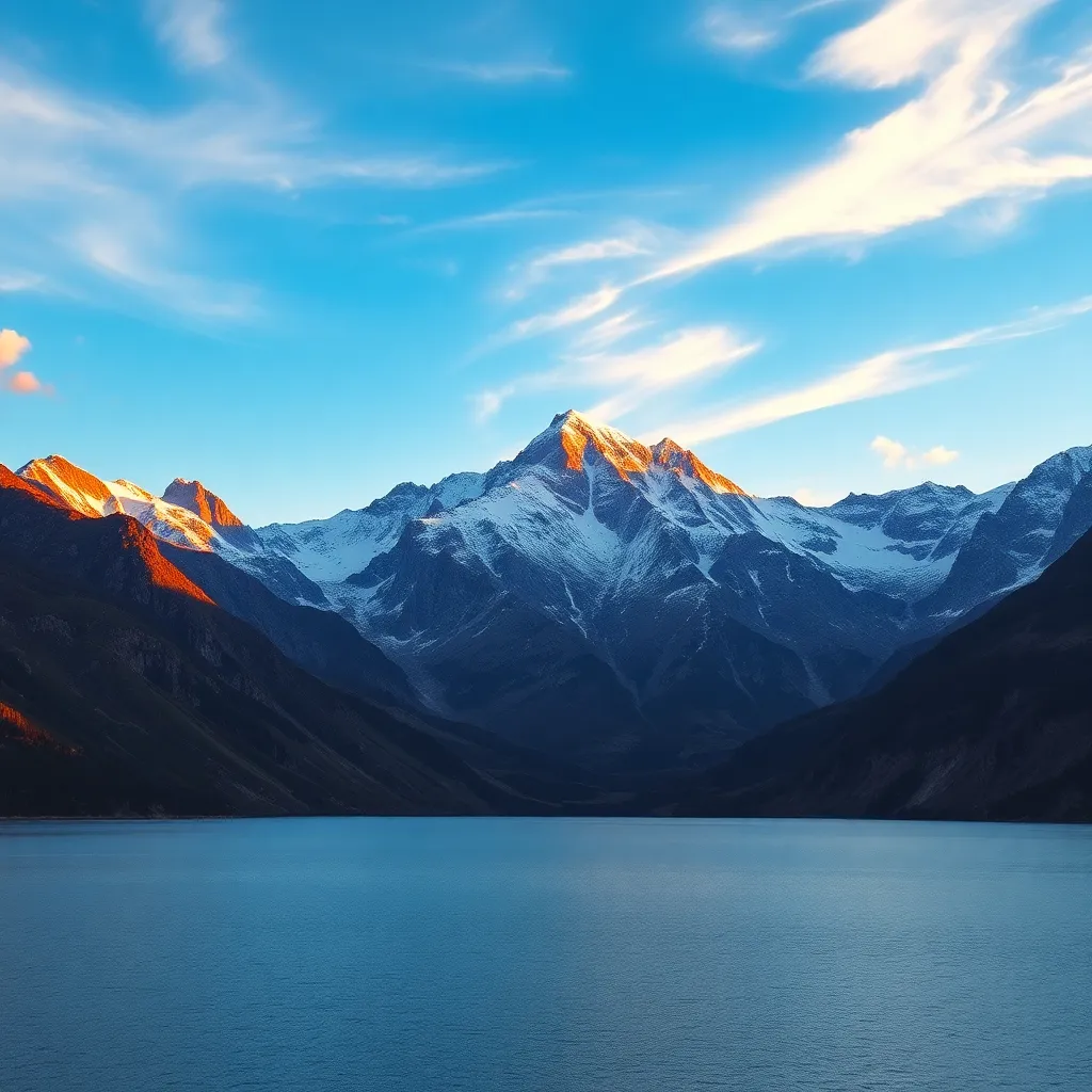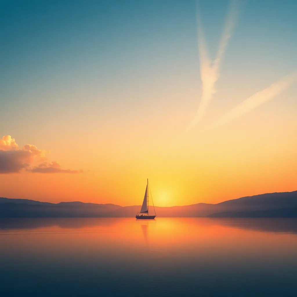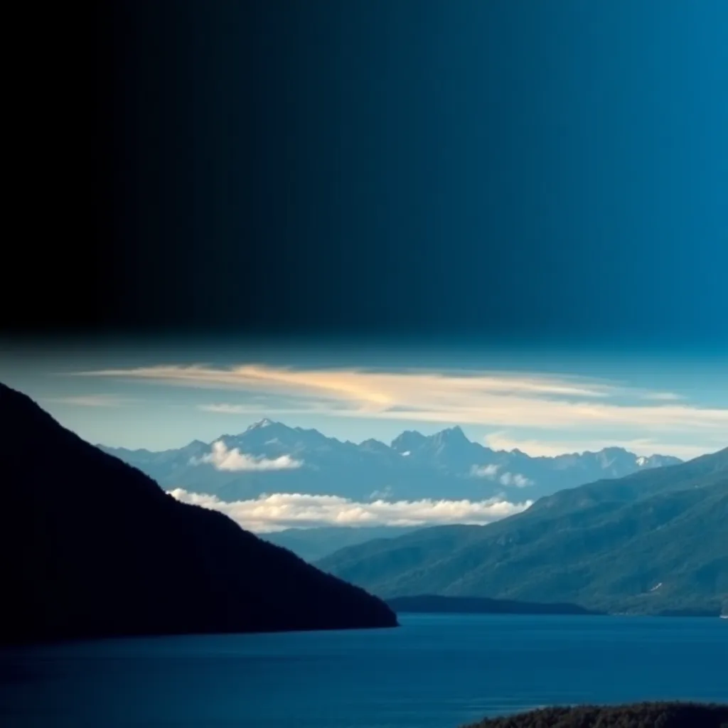 Create an AI-generated image by removing the black background from a given image. The original image features a beautiful landscape with a black silhouette of a mountain range against a dark blue sky. Use AI to remove the black background and replace it with a stunning sunset, adding warmth and depth to the scene.