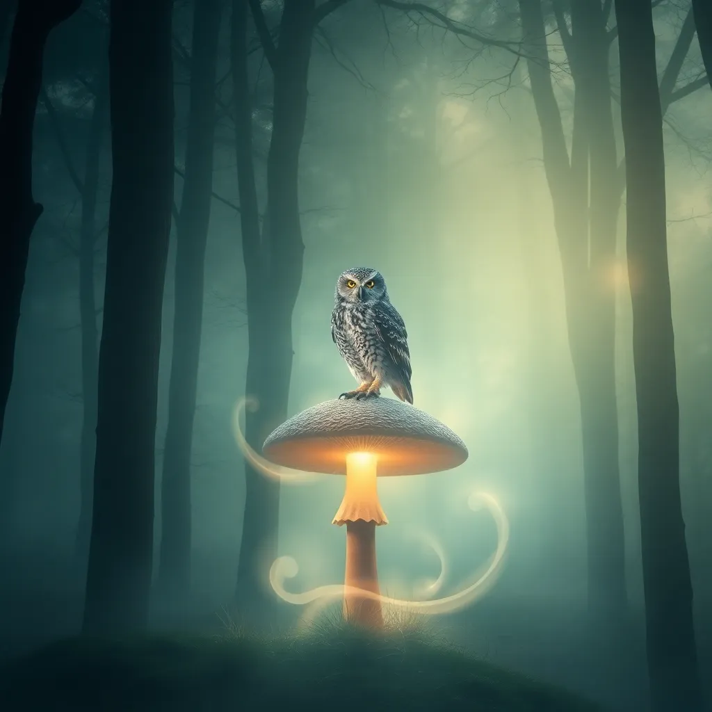 Envision a serene, misty forest, where ancient trees stand tall, their gnarled branches reaching towards the sky. A soft, ethereal light illuminates the scene, symbolizing spiritual guidance. A path winds its way through the trees, inviting the viewer to embark on a journey of self-discovery and inner peace.