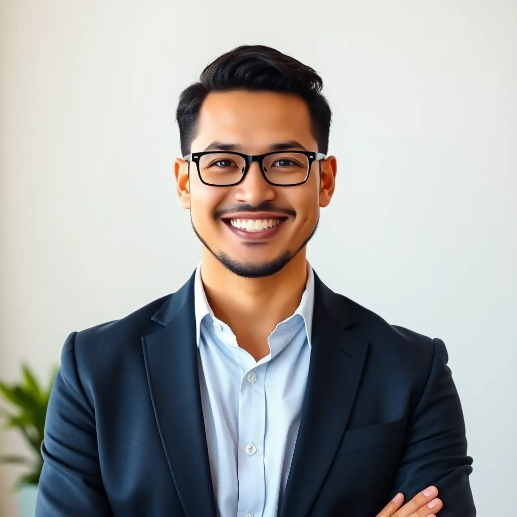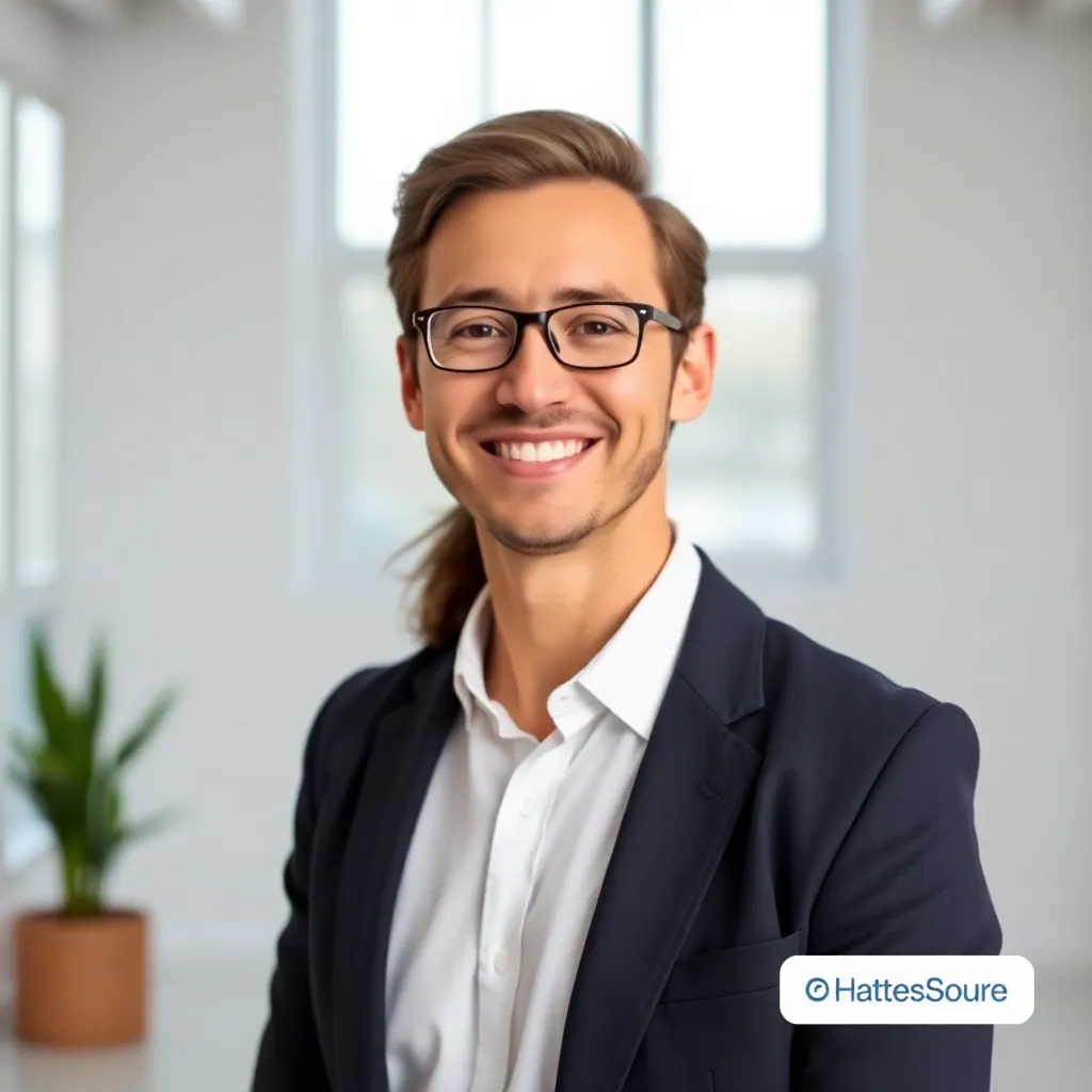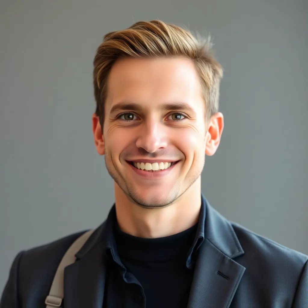 Create a professional headshot for a startup founder, capturing their confidence and entrepreneurial spirit. Imagine a bright, minimalist background with a warm, natural light. The founder, dressed in modern attire, looks directly at the camera with a friendly, approachable smile. Convey a sense of innovation, trust, and forward-thinking.