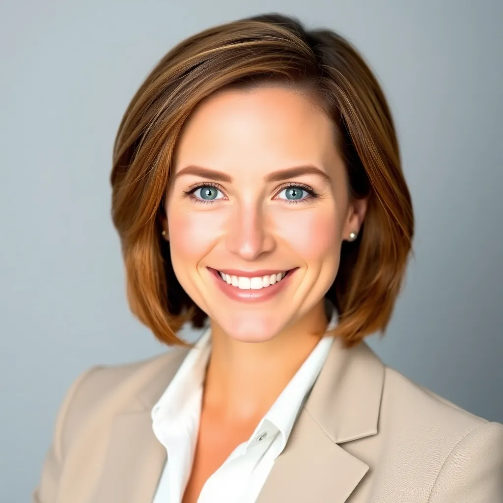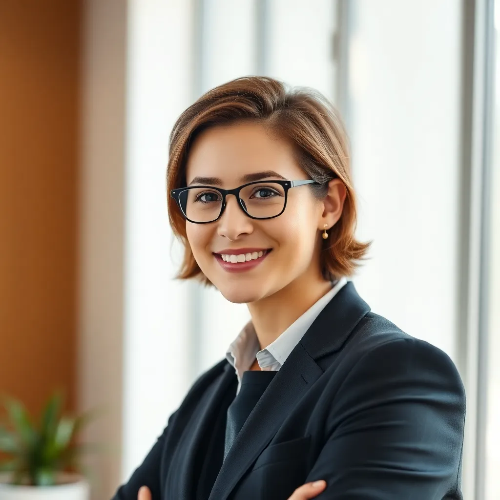 Capture the entrepreneurial spirit! Create a professional headshot for a startup founder. Imagine a bright and modern studio setting with a natural light background. The founder is dressed in a crisp white shirt and a trendy blazer, with a warm smile and a confident gaze. Generate an image that exudes innovation and success.
